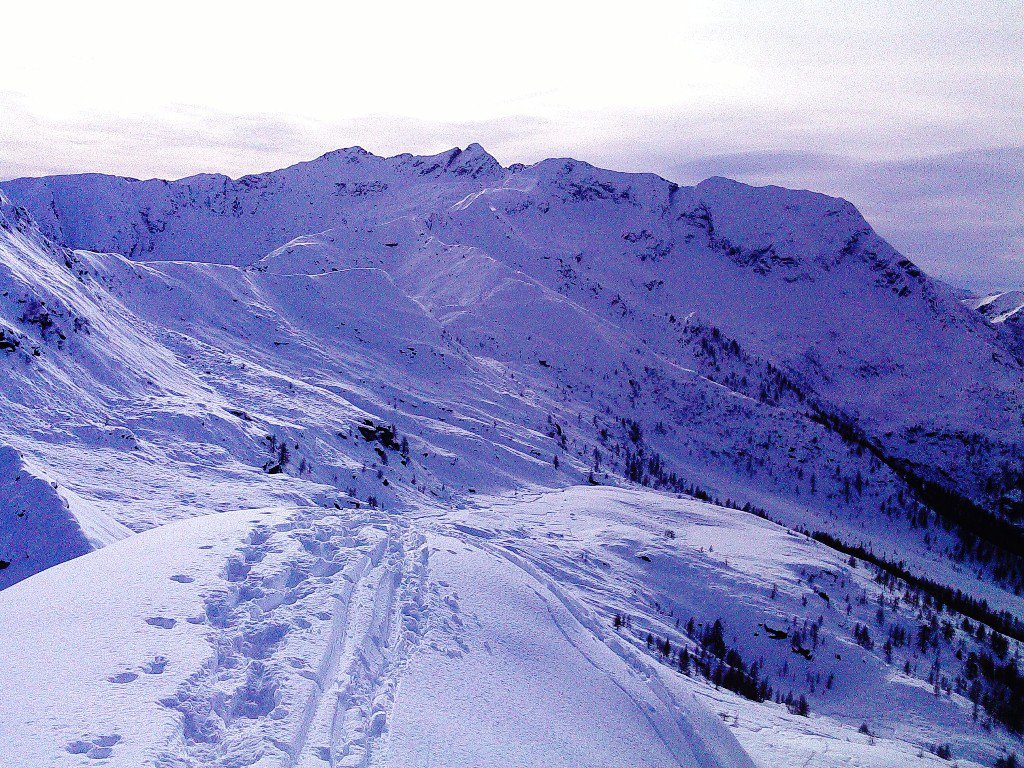 Temperature un po’ alte hanno reso la neve un po’ più impegnativa del previsto e solo grazie ad una vaga traccia preesistente sono riuscito ad arrivare in cima e a completare l’anello, altrimenti da solo, molto probabilmente avrei mollato. Calzato le ciaspole dopo un centinaio di metri di dislivello, si comincia con una ventina di cm di neve fino ad arrivare a 70/80 nella parte alta. Salito dalla dorsale nord e sceso dalla sud. In queste condizioni la salita a questa cimetta comporta un impegno non proprio trascurabile, pur essendo dislivello (1255 m +) e spostamento (10,2 km) relativamente contenuti. Vento fastidioso solo in prossimità della vetta dove non vi è possibilità di riparo: ho fatto solo una brevissima sosta. Cielo velato ma panorami soddisfacenti anche se meno pregiati di Monte Barone o Massa del Turlo. Nessuno in giro. Allego traccia dell’anello percorso.