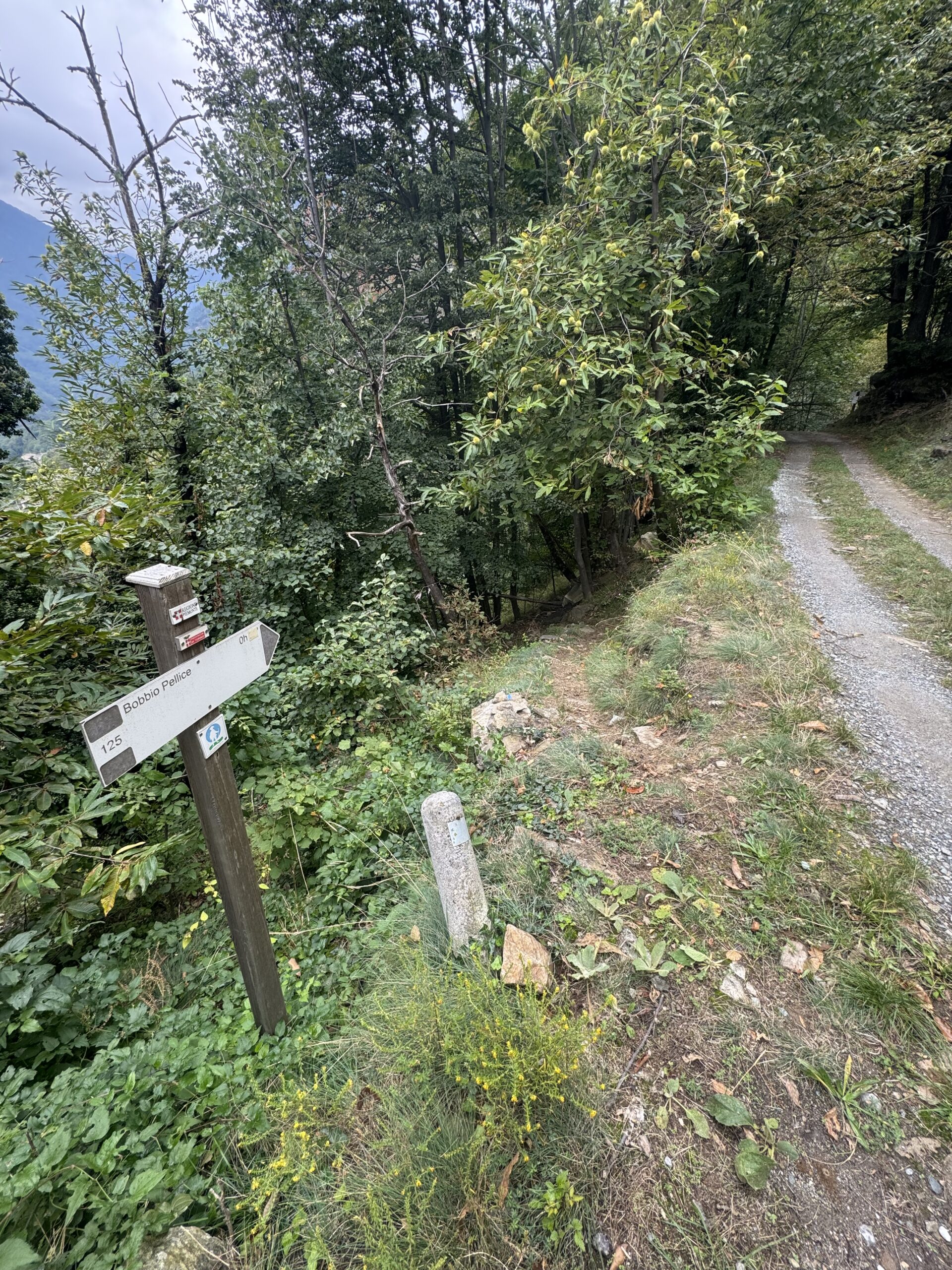 - Si può accedere anche dall’alto..passata la borgata Podio si prosegue verso la Sarsenà (stessa strada che si fa per andare alla parete delle Pausette e alla falesia del Becco di Bobbio), poco dopo la parete delle Pausette proseguendo la strada si arriva ad un tornante con un tavolo di pietra..lì si lascia l’auto..si torna indietro fino ad incontrare un cartello (a sx) con scritto “Bobbio Pellice” (vedi foto) scendere nel sentiero e seguire le marche blu..10min alla base della parete..