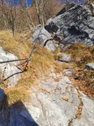 Dall’attacco a quota 1160 mt si sale un tratto verticale che prende la forma di un camino fino a trovare delle altre facili roccette, segue un breve tratto non attrezzato di sentiero, fino a risalire un’altra crestina. Continua un pezzo non attrezzato e seguono altre roccette, dei camini e sono presenti delle placche interessanti dove la difficoltà è un po’ più alta ma comunque divertente, così fino al ponte tibetano molto bello sopra al sentiero delle Meatte. Seguono una placca abbastanza verticale ma abbastanza ben appigliata e un passaggio che attraversa una spaccatura in cui si deve spaccare tra le due parti di roccia, bisogna scendere a trovare un appoggio e mettere la gamba dall’altra parte, poi andare 2 metri in opposizione e il passaggio un po’ più “critico” è finito. La ferrata termina dopo alcune roccette con una placca abbastanza difficile, ma aggirabile, a sinistra del libro della ferrata, da firmare! All’uscita proseguire dritti per il bosco, girare a sinistra e in 5/10 minuti si è sulla cima Boccaor segnata con segno rosso e bianco e quota 1535. Per scendere c’è il 151 (o il 149, del Gratarol, segnato EE).