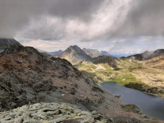 Salite da Dondena ,auto al park per Barbustel.Segni rossi sul sentiero che arriva dal Raty .Ci ha lasciato vedere il panorama e intanto incombevano nubi nere.Discesa verso il Raty e visto il meteo ,discesa diretta per riprendere la strada.Arrivate all’auto si è messo a piovere.Sono 1200 m. e 15 km.