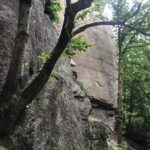 L9: dritti dalla sosta per muro lichenato (passo 6b expo – no spit) e poi splendida fessura a incastro (7A+ all’inizio, poi più facile).