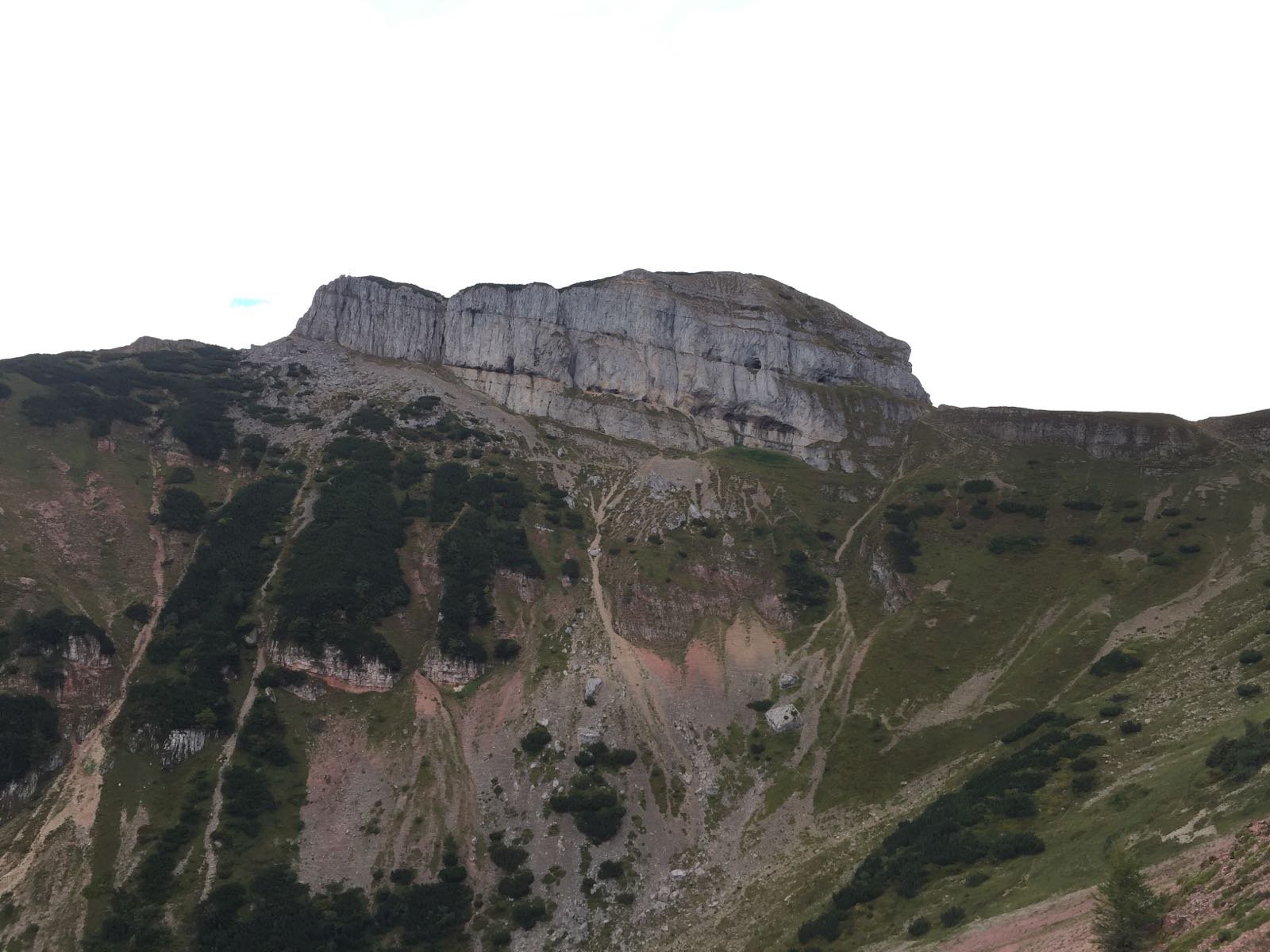 Questo tratto è difficoltoso in caso di ghiaccio o umido sulla roccia, essendo quasi verticale. In breve si traversa alla terza e ultima vetta, la cima Verde, dalla quale si scende nel bosco fino alla piana per raggiungere poi il parcheggio della partenza.