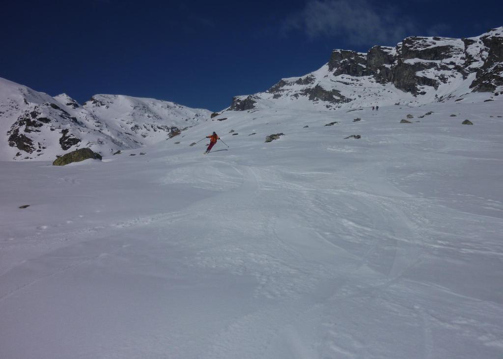 bella gita, oggi in condizioni ottime a patto di scendere presto, vista l’esposizione est. noi abbiamo iniziato la discesa alle 9.50, e gli ultimi 200 mt erano molto molto marci (per questo non do 5 stelle). per il resto perfetta! Si parte da quota 1400 mt circa.