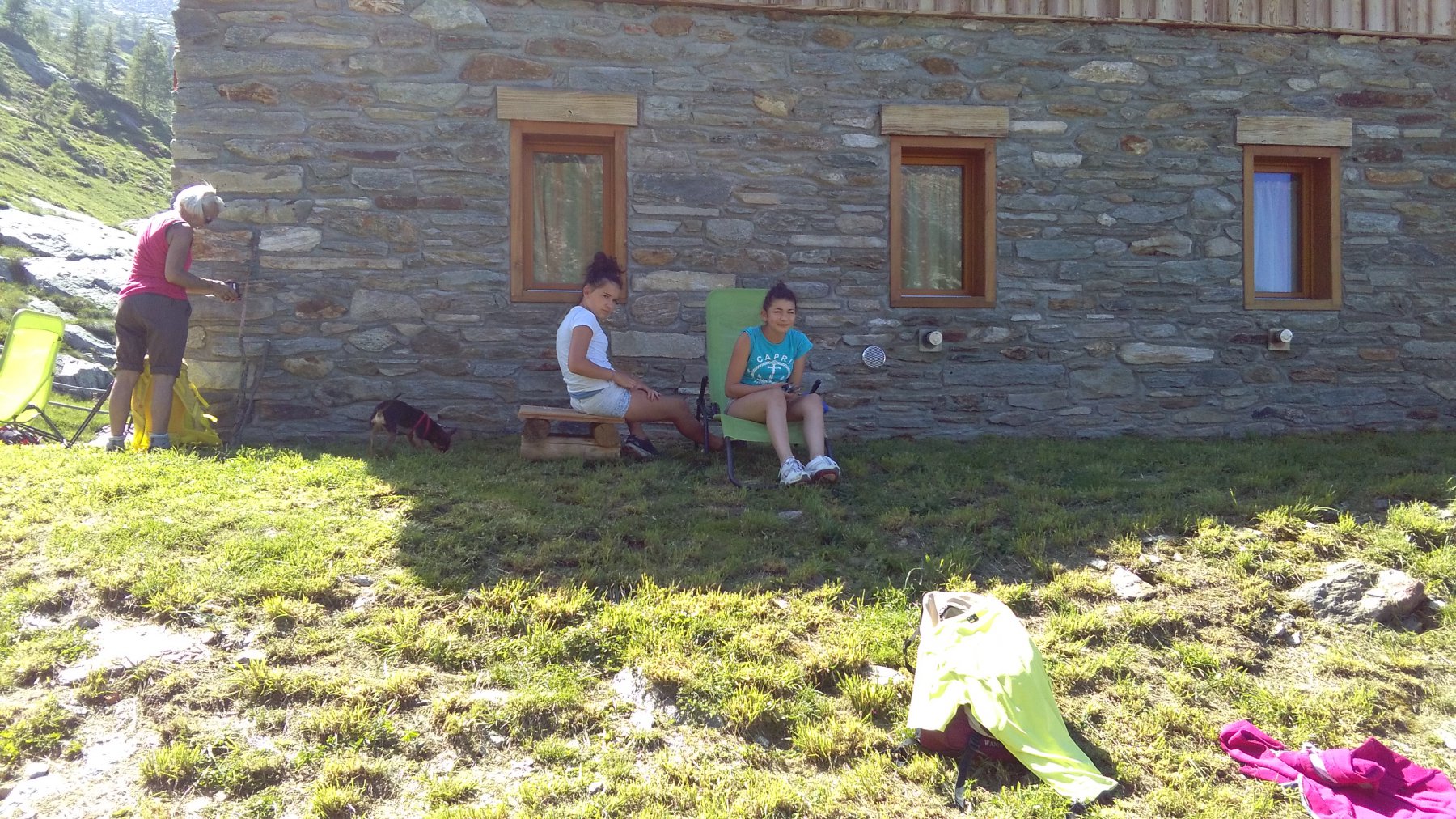 Gitassa di famiglia con Anna, Lety , Agnese e cane al seguito…il sentiero è piacevole e snodandosi nel bosco fa si che anche partendo tardi non si soffra troppo il caldo. Notevole l’esposizione sull’orrido in corrispondenza del ponticello a circa un’ora dalla partenza. Bello il colpo d’occhio che si ha sulla costiera che va da Bec Renon al Bec delle Strie quando si arriva al rifugio.
