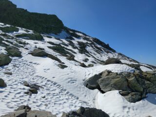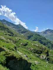 Ho deciso all’ultimo per il Bordevolo invece della Mionda perchè speravo di trovare il sentiero pulito, ma dai 2400 c’era ancora neve. Sarà per la prossima volta, ma gita splendida nel vallone di Codebiollo per una zona selvaggia e poco frenquentata. Purtroppo il sentiero già dalla balma di Quiri fino al Verdasson è ormai un filo appena visibile che si perde nella valle. Sarebbe anche ben marcato, ma l’erba è già alta. Da Verdasson si arriva al bivio per la Mionda (sulla sinistra) e Bordevolo (sulla destra) e da qui in poi manca qualsiasi traccia. Nonostante questo bella ravanata in solitaria