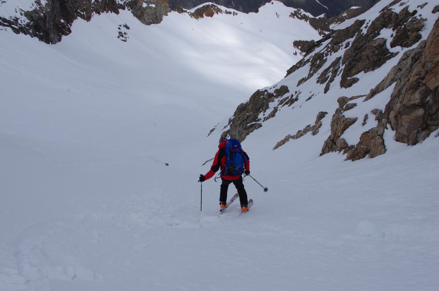 Scesi ancora per lingua di neve sino a quota 1600.