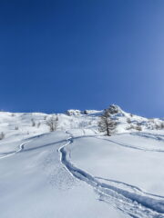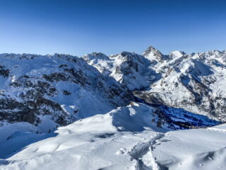 -10 °C alla partenza, calma di vento lungo tutto il percorso, un metro di polvere superlativa dalla vetta al parcheggio: la gita perfetta.