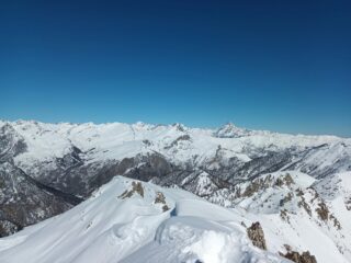 Partiti da Gheit e percorso l’itinerario solito. Bosco tritato da innumerevoli passaggi. Punta raggiungibile senza ramponi. In discesa abbiamo optato per la Cumba Vallonetto dove c’è ancora una bella farina fredda e zone intonse. Quando la Cumba iniziava a stringersi ci siamo spostati sulla sx orografica e abbiamo raggiunto il lariceto sotto la La Costetta (1972 m) e sempre su bella farina e ampi pendii verso i prati a monte di Pratorotondo.