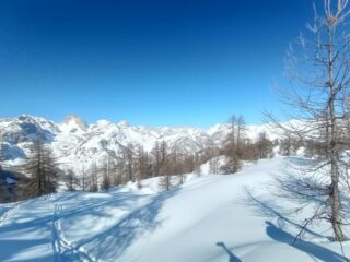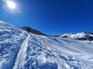 Gita super azzeccata, saliti da cialancia piana e scesi da Cumbal Vallonetto, in salita nulla da segnalare tutto ben tracciato e in ottime condizioni, crestina finale compresa. Discesa: molto bello il primo pendio all’ombra delle pareti del Cassorso, farina sublime, peccato per qualche pietra che sbuca ogni tanto. Dal restringimento in poi sempre sciabile su traccia molto lavorata, se si è padroni degli attrezzi si scende bene fino in fondo, bosco compreso che presenta crosta molto tritata. Rientro alla macchina comodo sulla solita strada di chialvetta. Ambiente superbo, però mi aspettavo più neve, non durerà più molto. Con Beppe e Roby in gran forma, anche questa messa nel sacco.
