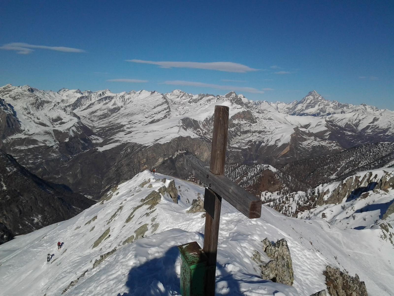 Bel giro ad anello. Salita “soleggiata” con neve piuttosto scarsa nella parte bassa. Faticosa la salita al colle, per il traverso finale e l’arrivo alla vetta (o meglio all’ anticima) ho preferito usare i coltelli. Discesa su neve trasformata nel canale in alto, e poi su neve piu’ leggera nella parte intermedia ancora in ombra. Parte bassa un po’ da dimenticare, ma tutto sommato bella sciata.