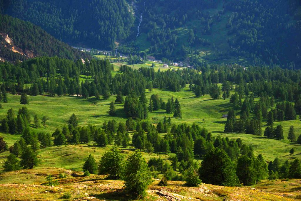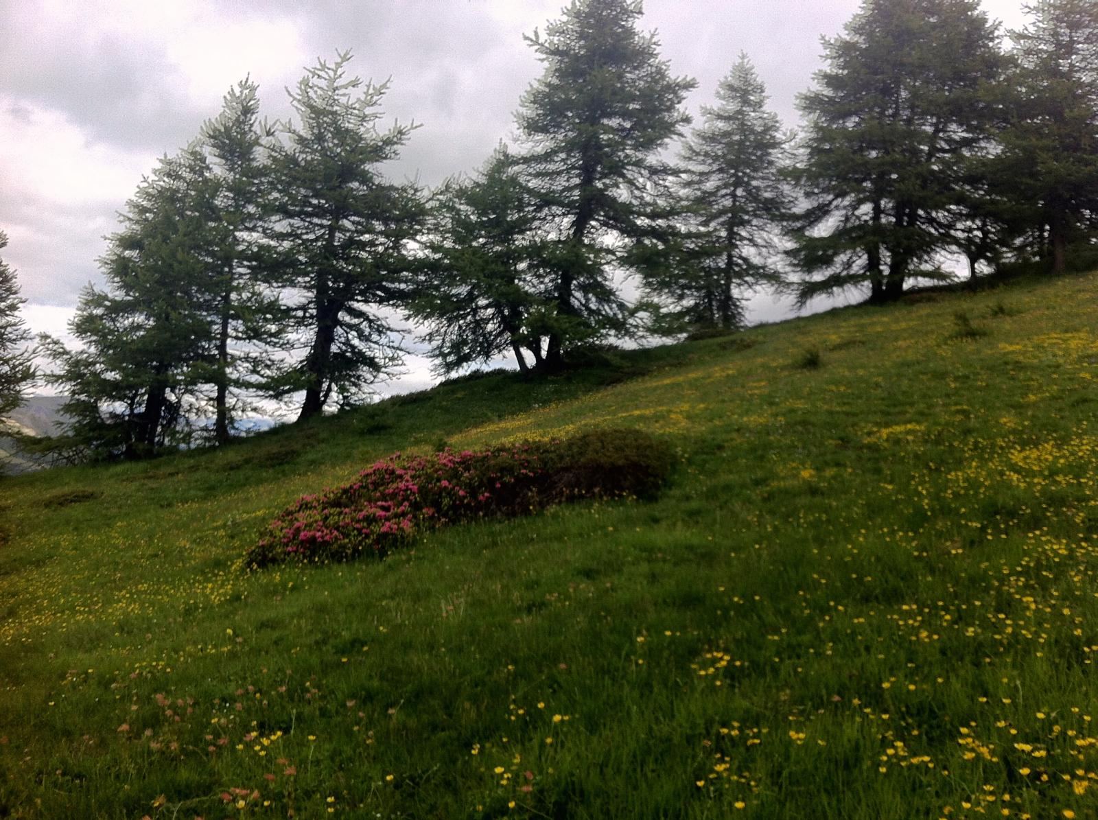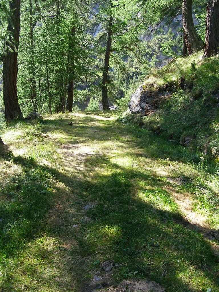 Da qui (segnale) imboccare lo stretto sentiero in discesa dal fondo compatto che, con tanti stretti tornantini (prestare attenzione ad uno dei primi, perché in caso di errore si fa un salto bello alto), porta fin quasi a Bousson.
