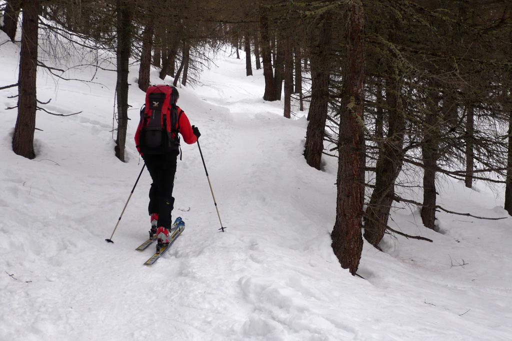Discesa: buona per i primi 150 metri in quanto farina su fondo portante che permetteva belle curve. Parte centrale con crostaccia da vento difficilmente sciabile grazie anche alle innumerevoli vecchie tracce (impossibile trovare qualcosa di vergine da calpestare). Pendii finali con crosta portante dove si riuscivano ancora a trovare zone non battute che permettevano curve migliori.