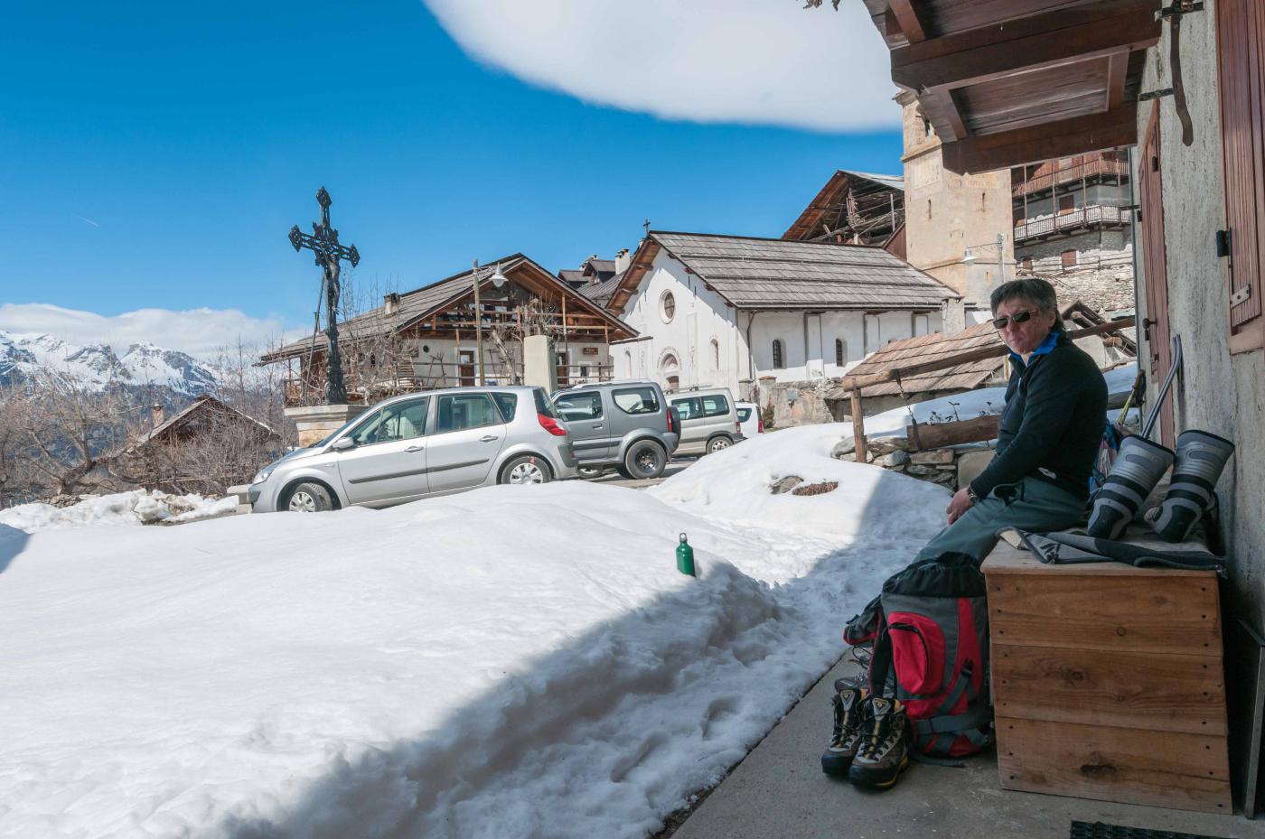 Siamo scesi da dove siamo saliti per cui su neve quasi intonsa sbucando sopra la frazione di Thures.