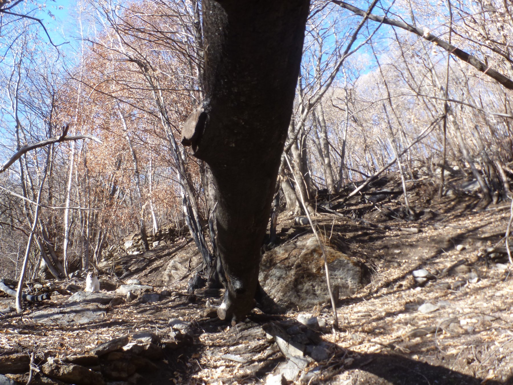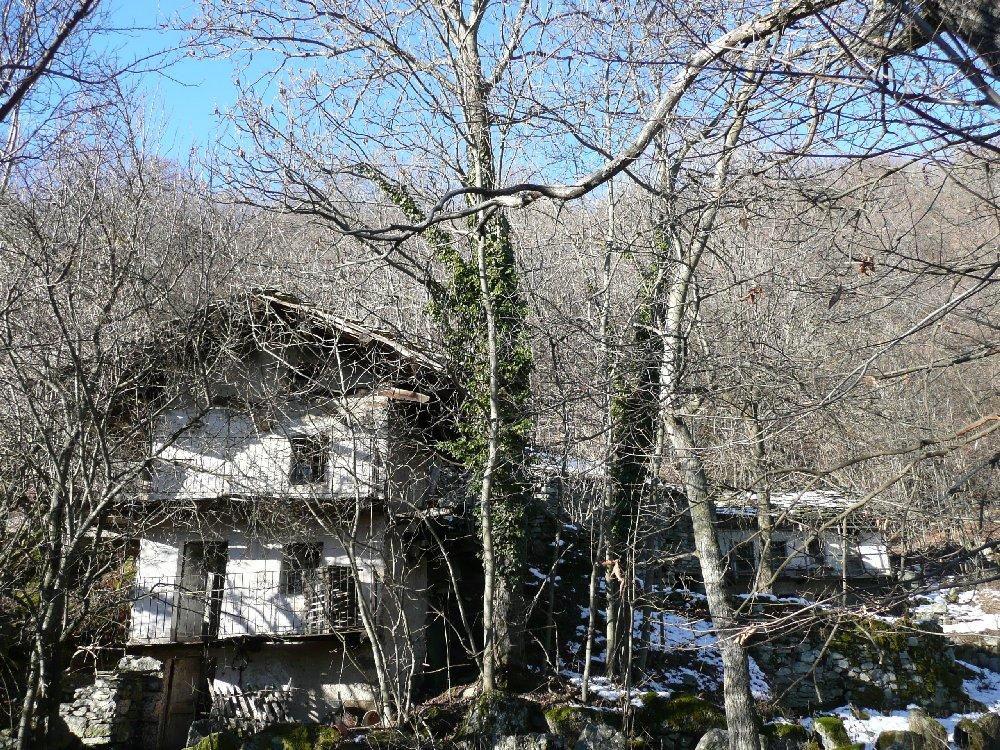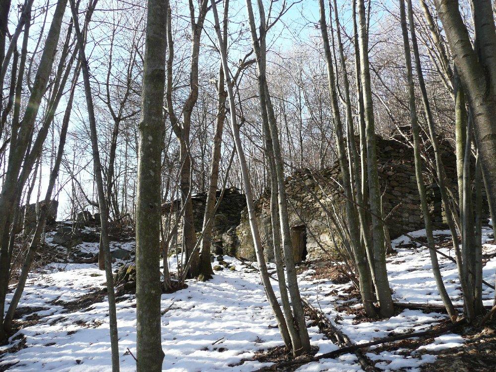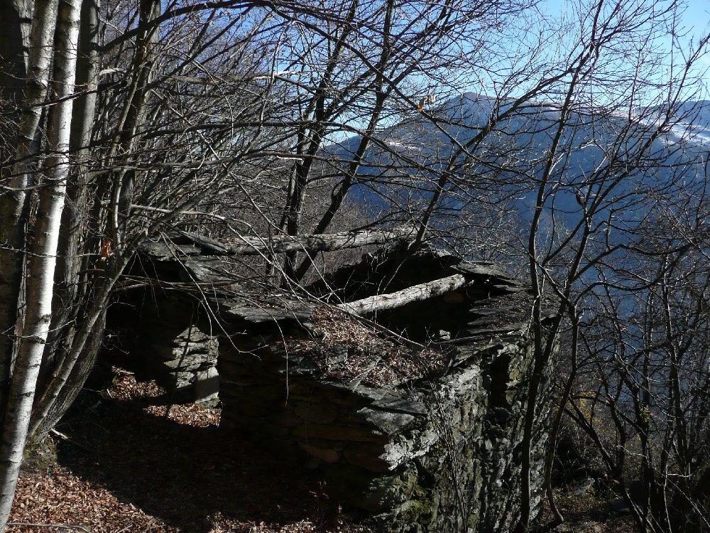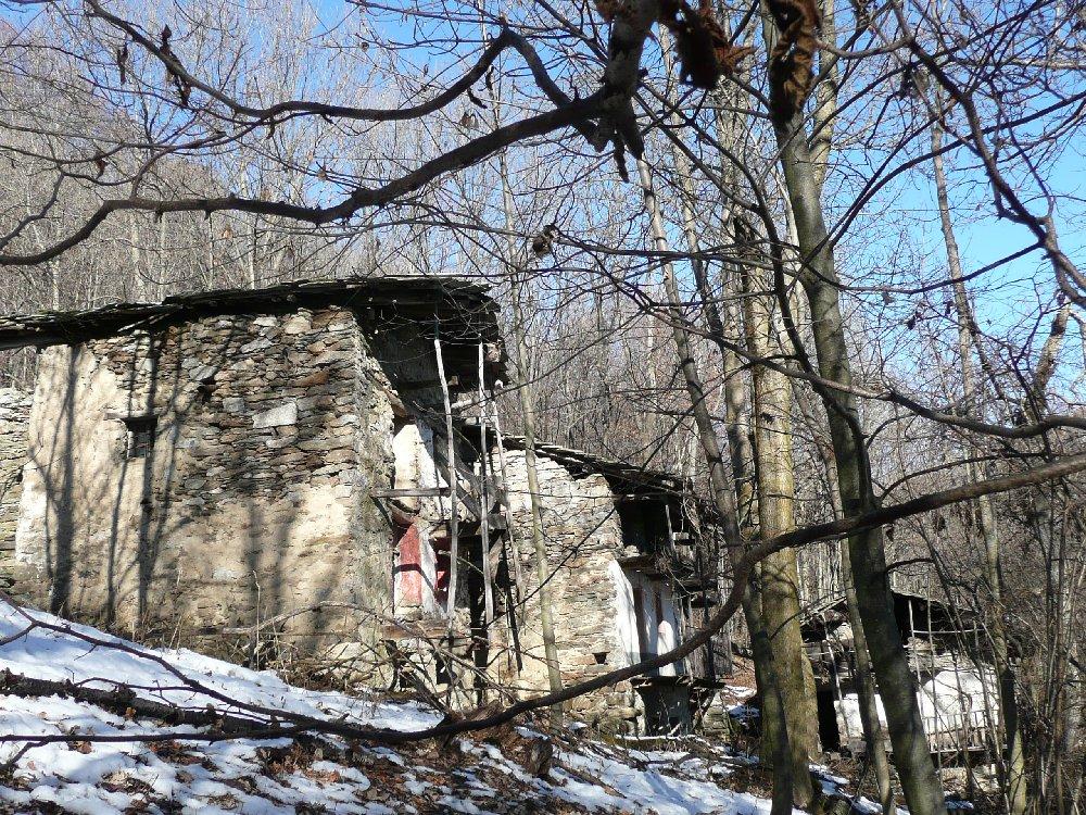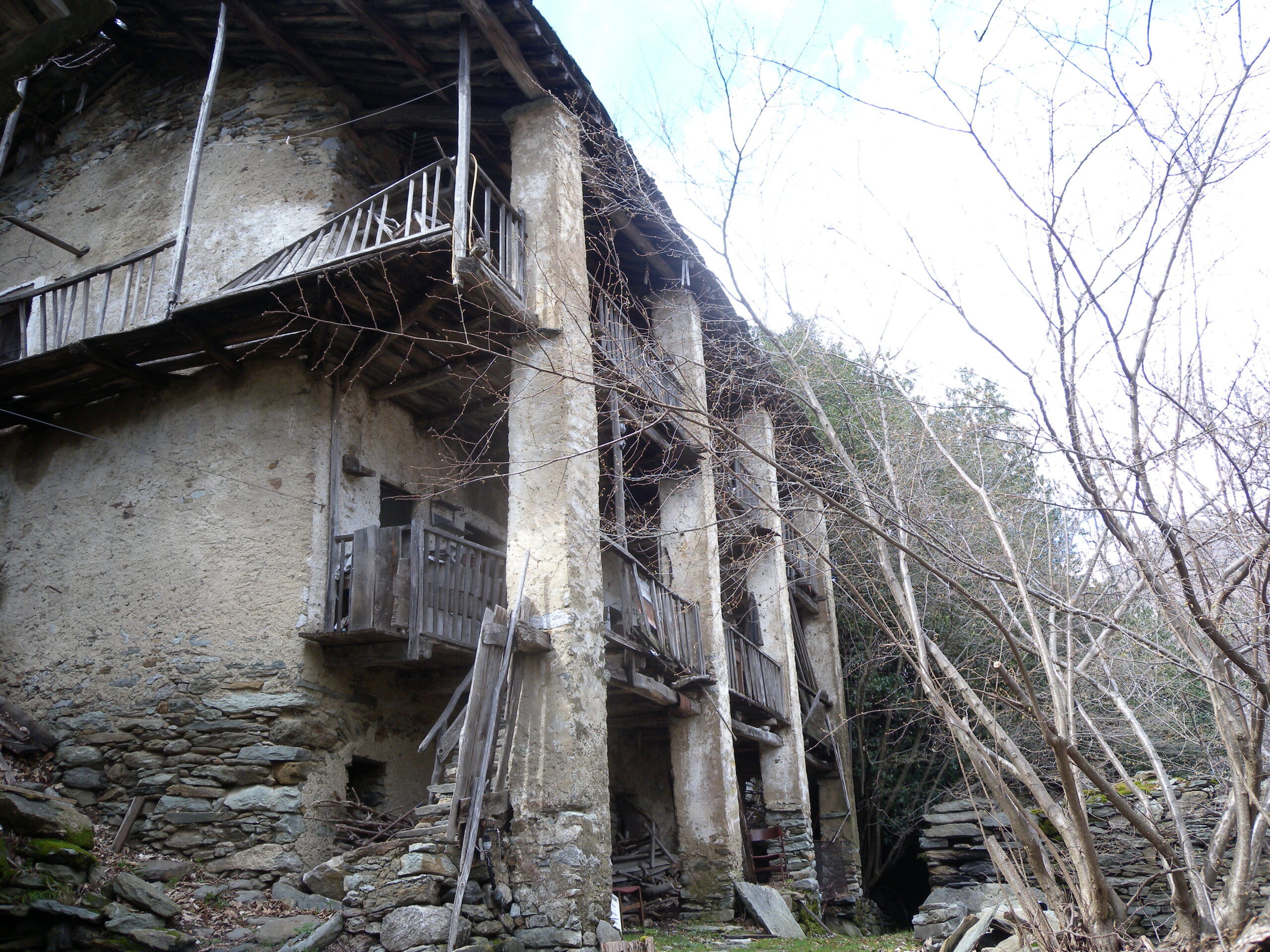 Ora all’altezza dei resti dell’invaso arriva una recente poderale di servizio per gli impianti di ricaduta delle acque per la sottostante centrale, il percorso prosegue sulla nuova poderale (il sentiero è praticamente scomparso per un lungo tratto siano a giungere ad un tornate a dx e superandolo di poco a dx si trova il sentiero che entra di li a poco nel borgo, ormai del tutto abbandonato di Costa 1005 m con al chiesetta di San Grato, piccola e spartana (risalente a prima del 1700) di qui per il sentiero che attraversa verso valle le case si ritorna a brevissimo sulla poderale che si segue fino al secondo tornante verso sx dove si trova di nuovo il sentiero (tacche gialle) che consente di tagliare per 2 volte la strada pressochè nello stesso punto (cartina MU perfetta) sino alla sbarra di divieto di accesso alla borgata Budrer 770 m che si compone un caratteristico gruppo di piccole case che si affacciano su un unico cortile chiuso da un antico portone, all’esterno delle case si trova la più piccola chiesetta di Sparone dedicata a di S. Pietro in Vincoli (notizie dal 1729). dopo 300 m altro taglio della poderale per evitare un tornante –