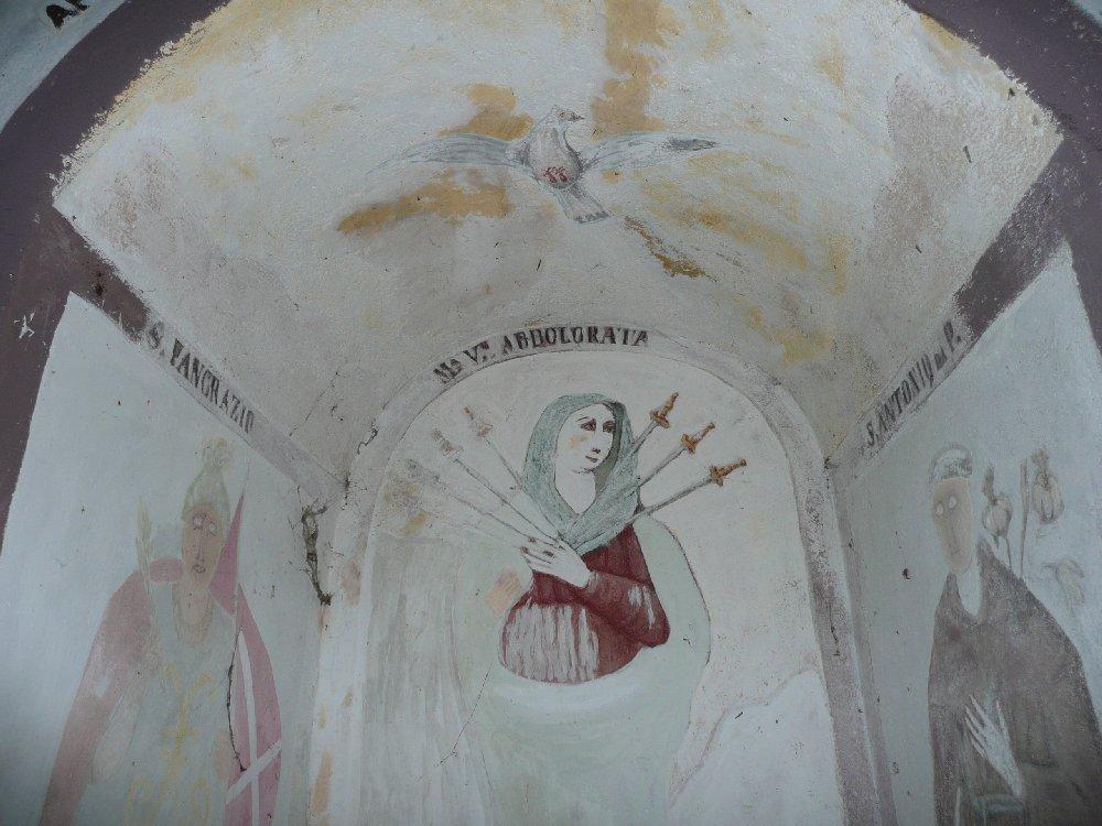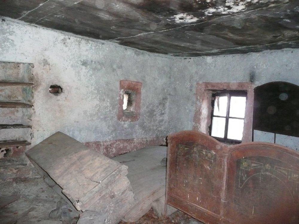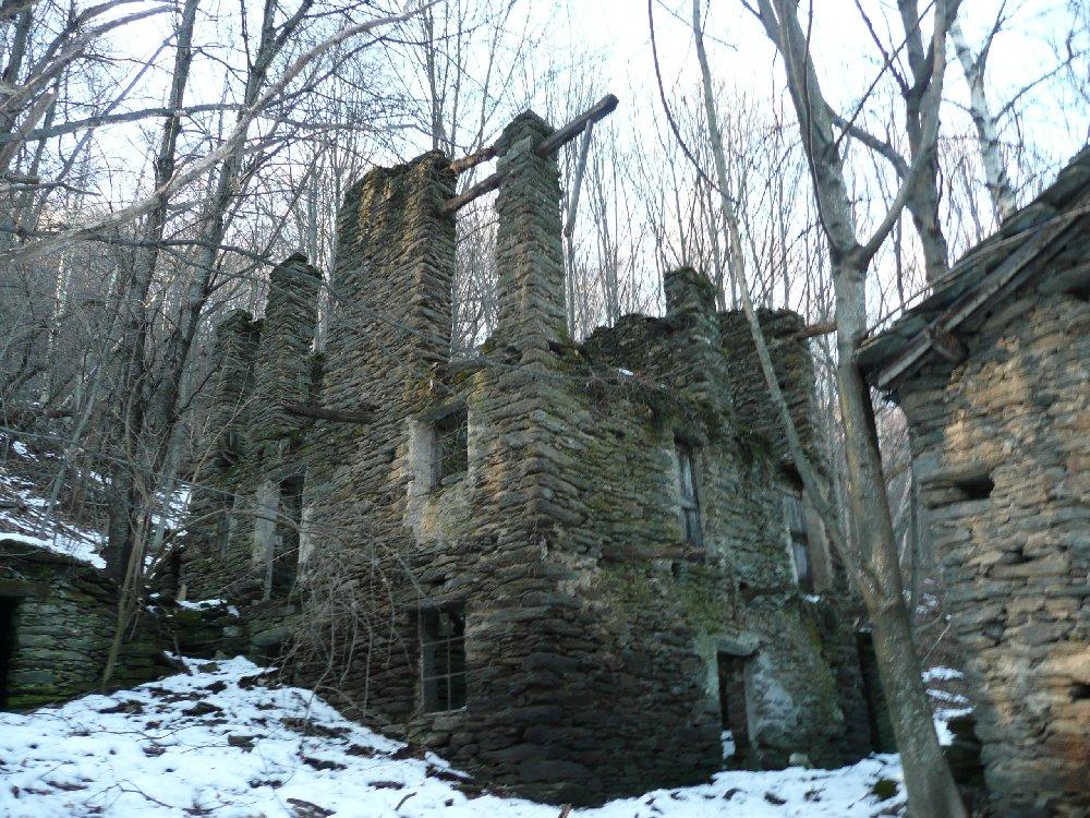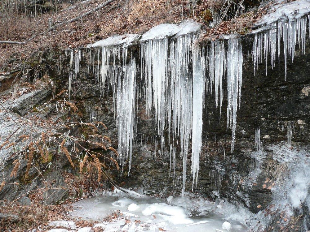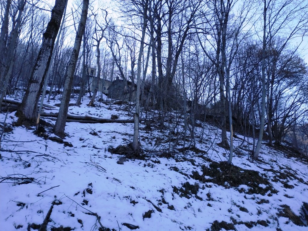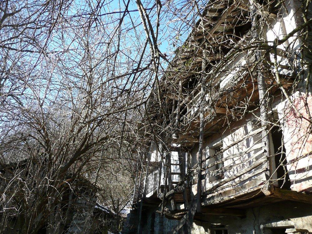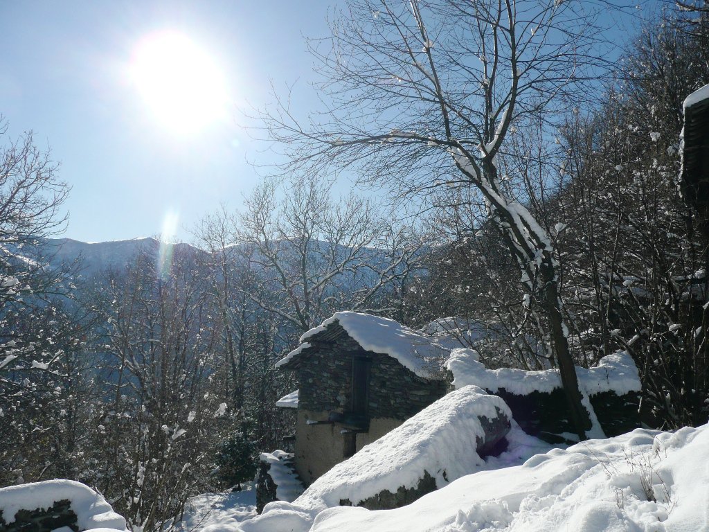 Ora all’altezza dei resti dell’invaso arriva una recente poderale di servizio per gli impianti di ricaduta delle acque per la sottostante centrale, il percorso prosegue sulla nuova poderale (il sentiero è praticamente scomparso per un lungo tratto siano a giungere ad un tornate a dx e superandolo di poco a dx si trova il sentiero che entra di li a poco nel borgo, ormai del tutto abbandonato di Costa 1005 m con al chiesetta di San Grato, piccola e spartana (risalente a prima del 1700) di qui per il sentiero che attraversa verso valle le case si ritorna a brevissimo sulla poderale che si segue fino al secondo tornante verso sx dove si trova di nuovo il sentiero (tacche gialle) che consente di tagliare per 2 volte la strada pressochè nello stesso punto (cartina MU perfetta) sino alla sbarra di divieto di accesso alla borgata Budrer 770 m che si compone un caratteristico gruppo di piccole case che si affacciano su un unico cortile chiuso da un antico portone, all’esterno delle case si trova la più piccola chiesetta di Sparone dedicata a di S. Pietro in Vincoli (notizie dal 1729). dopo 300 m altro taglio della poderale per evitare un tornante –