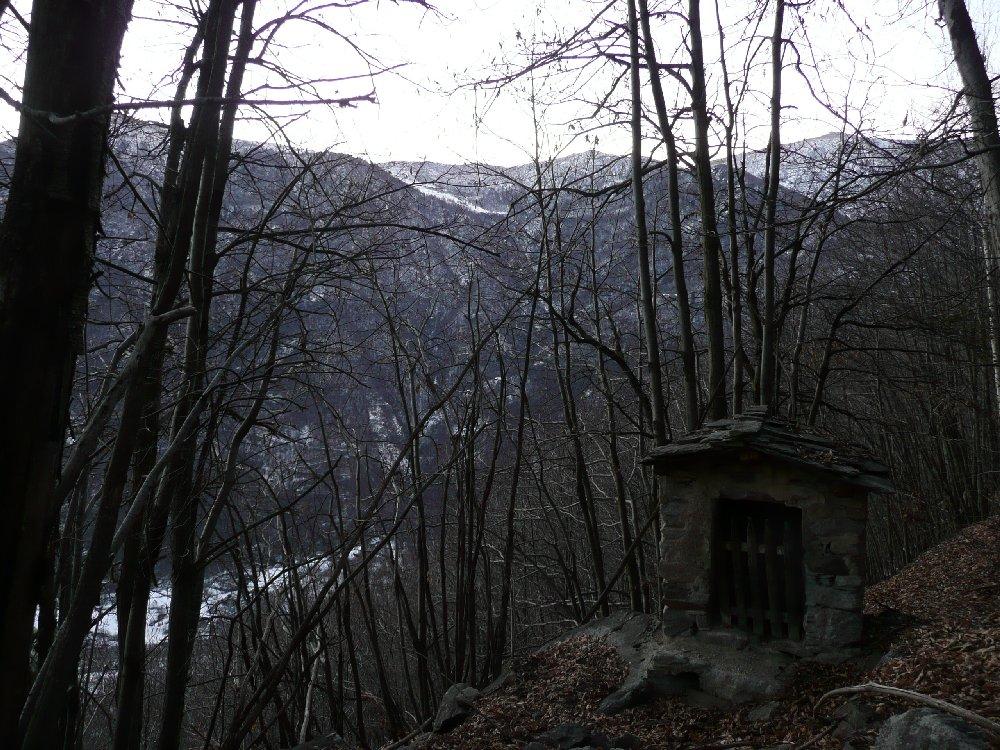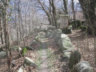Si attraversa via Olivetti e al bivio successivo si prende a Sx (tacche gialle) il sentiero sale decisamente, attraverso un bosco ricco di vegetazione, portando direttamente a Bose 1065 m, una volta importante frazione di Sparone; sul sentiero a quota 750 m si trova la prima di una decina di cappelle votive che si incontreranno lungo tutto il ben mantenuto sentiero.