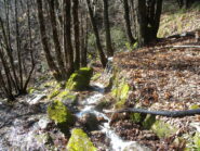 Si prosegue in discesa sulla poderale sino ad incrociare la strada asfaltata e si imbocca il sentiero al tornante nei pressi della centrale idroelettrica – di qui