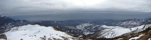 Giornata grigia, cielo coperto, freddo non eccesivo, panorama ristretto con scarsa visibilità verso la pianura.