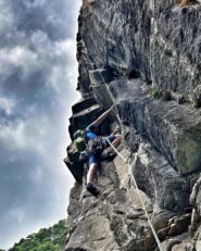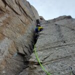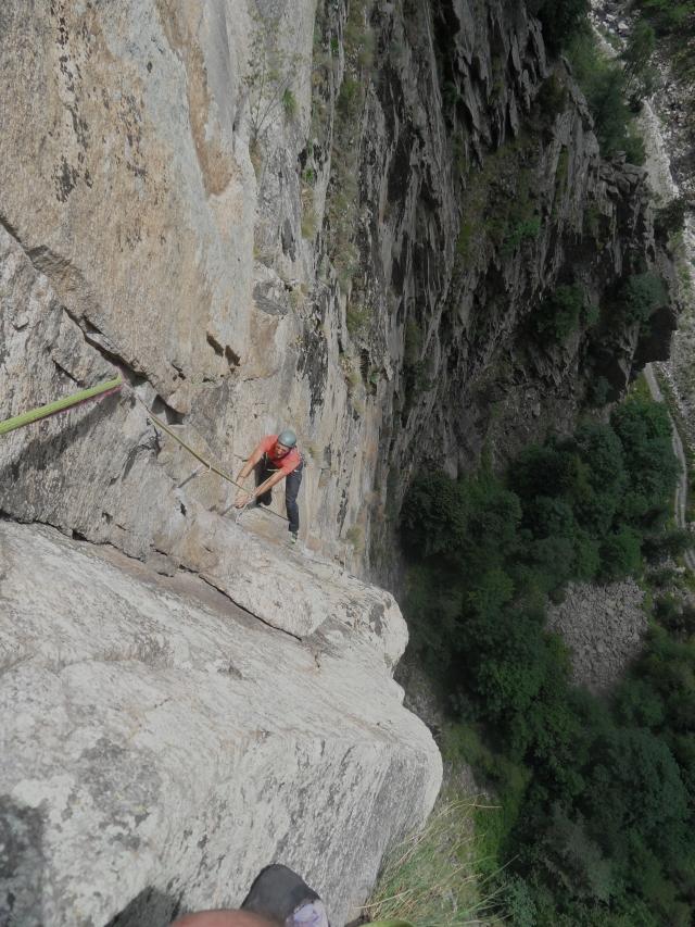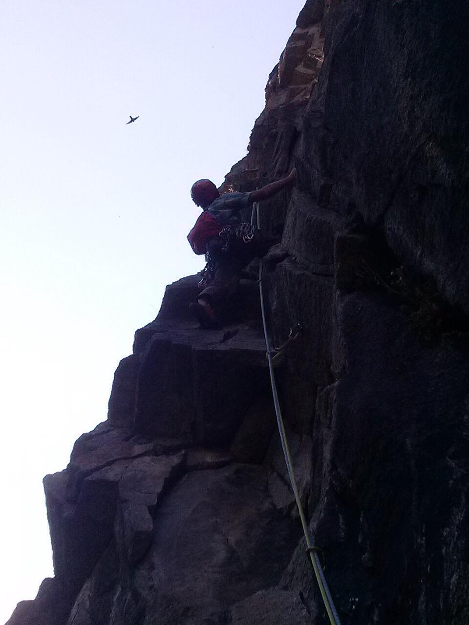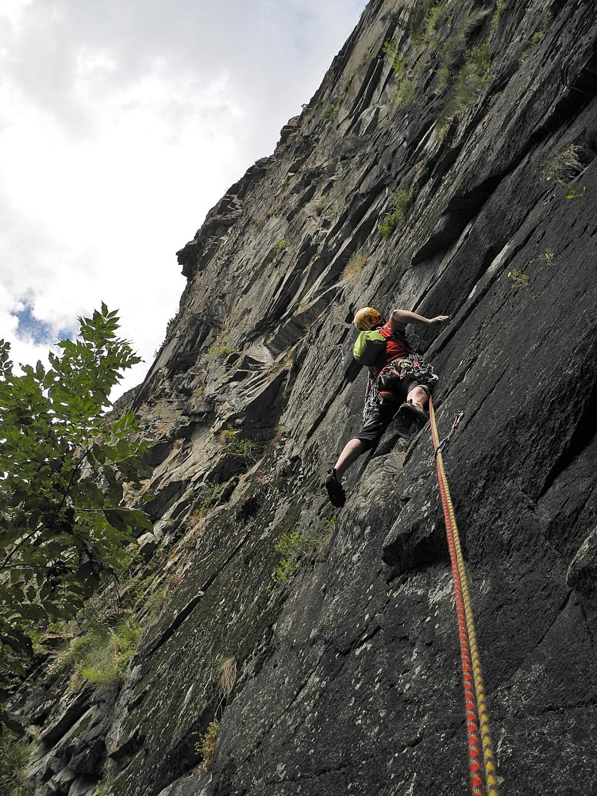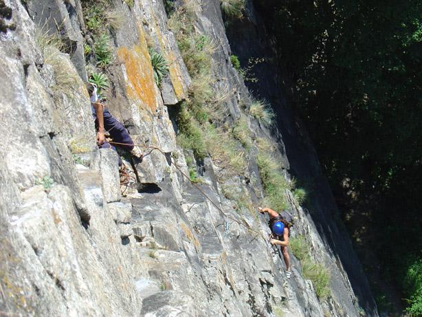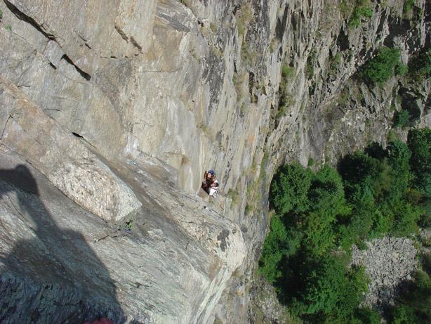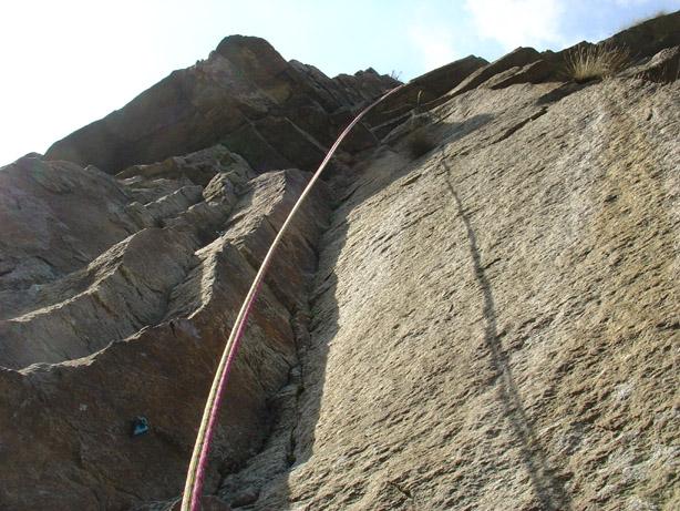 Via atletica, molto continua che sale la verticale parete a sinistra dello Sperone dei Corvi.