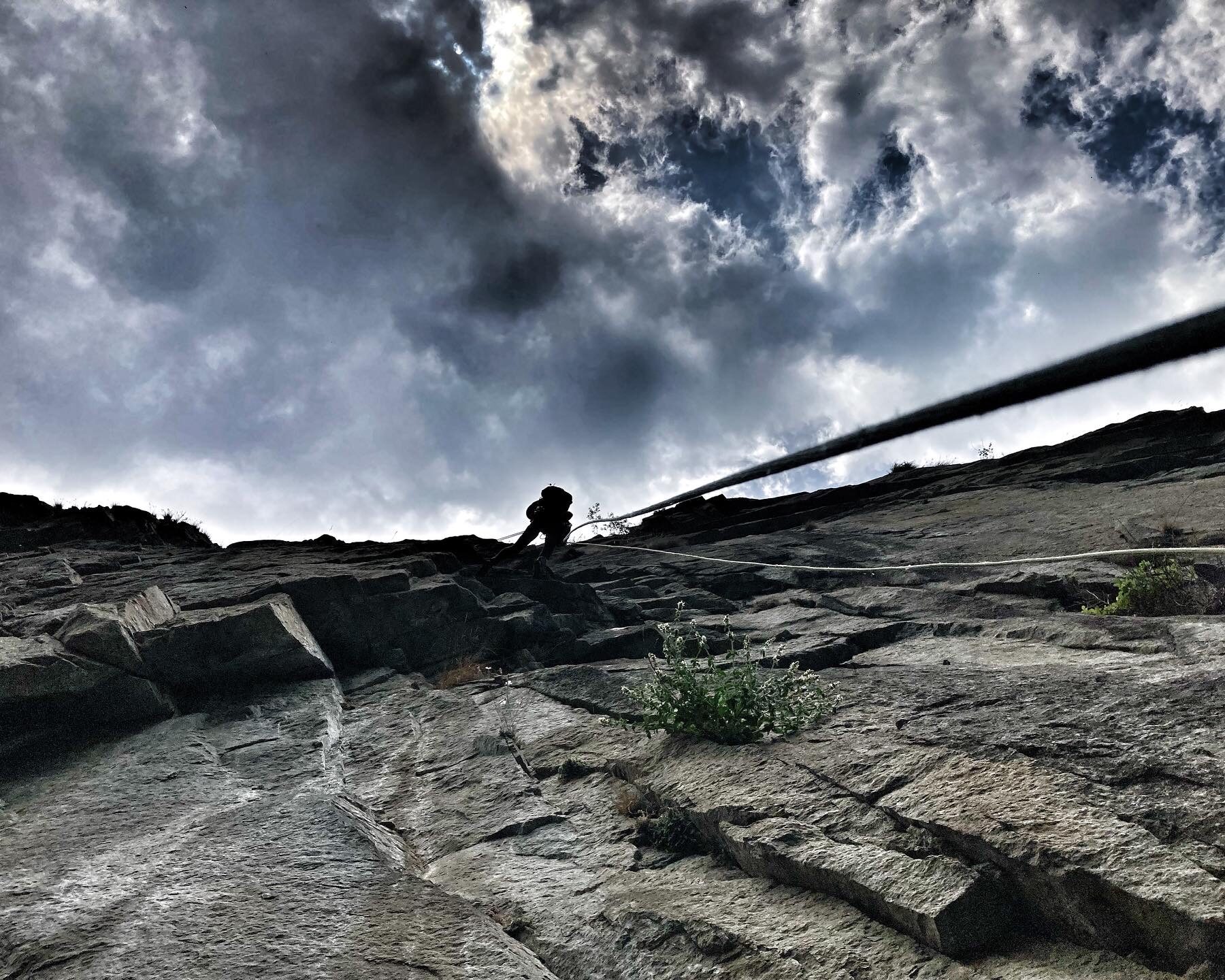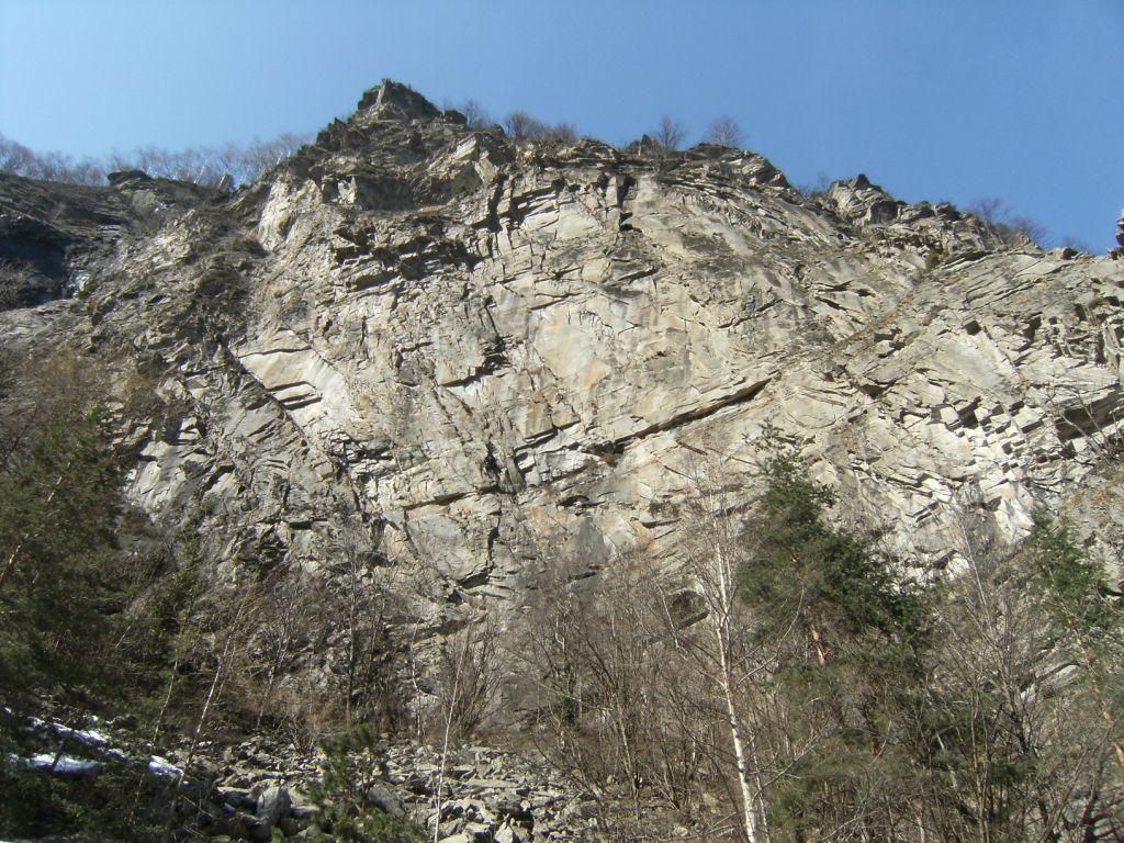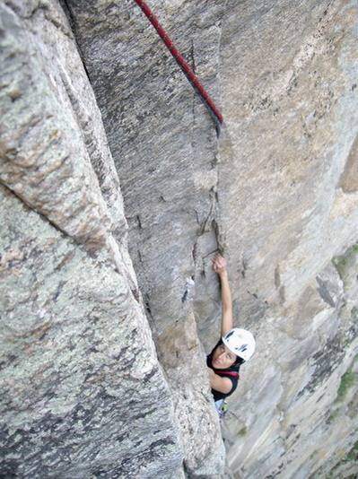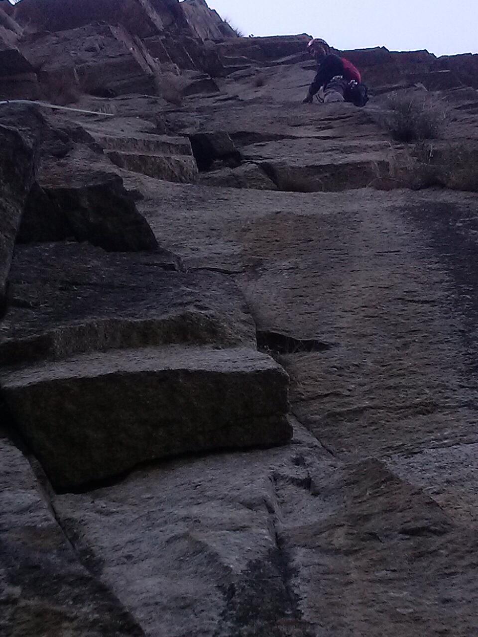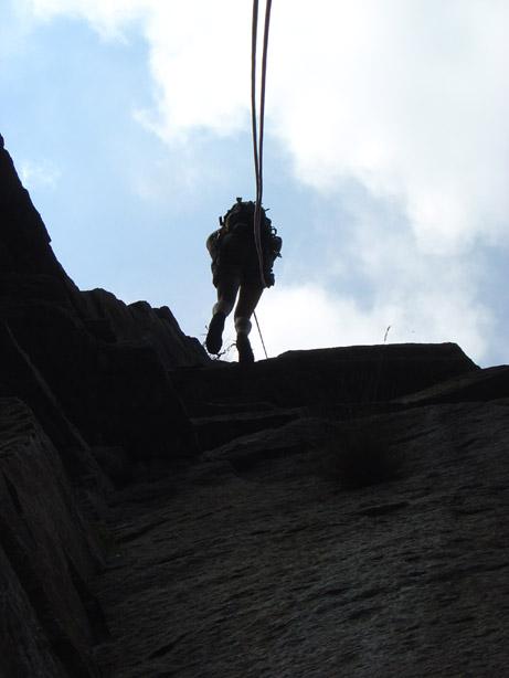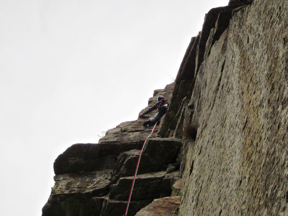 Via atletica, molto continua che sale la verticale parete a sinistra dello Sperone dei Corvi.