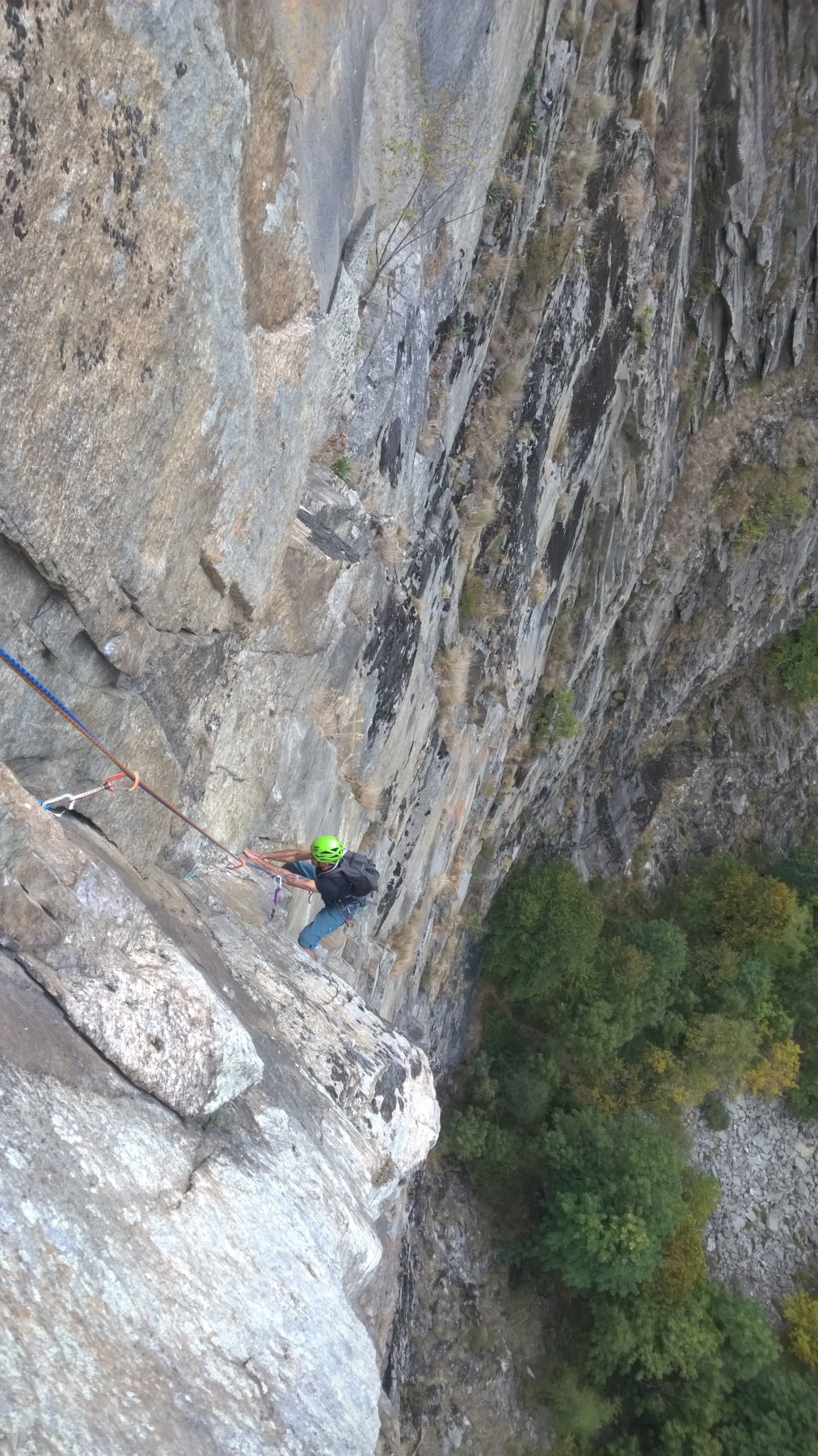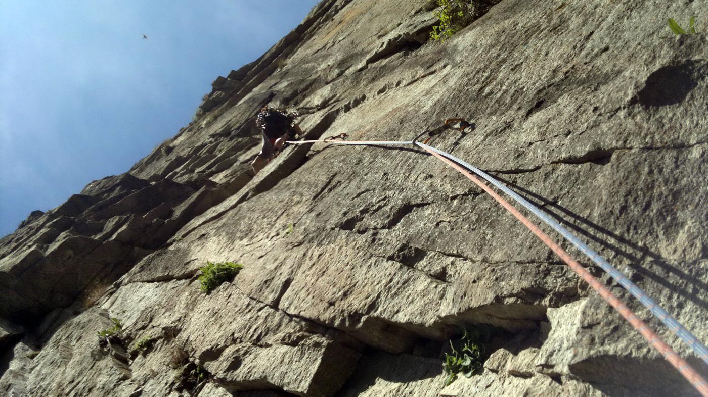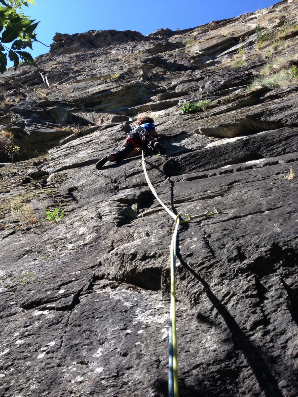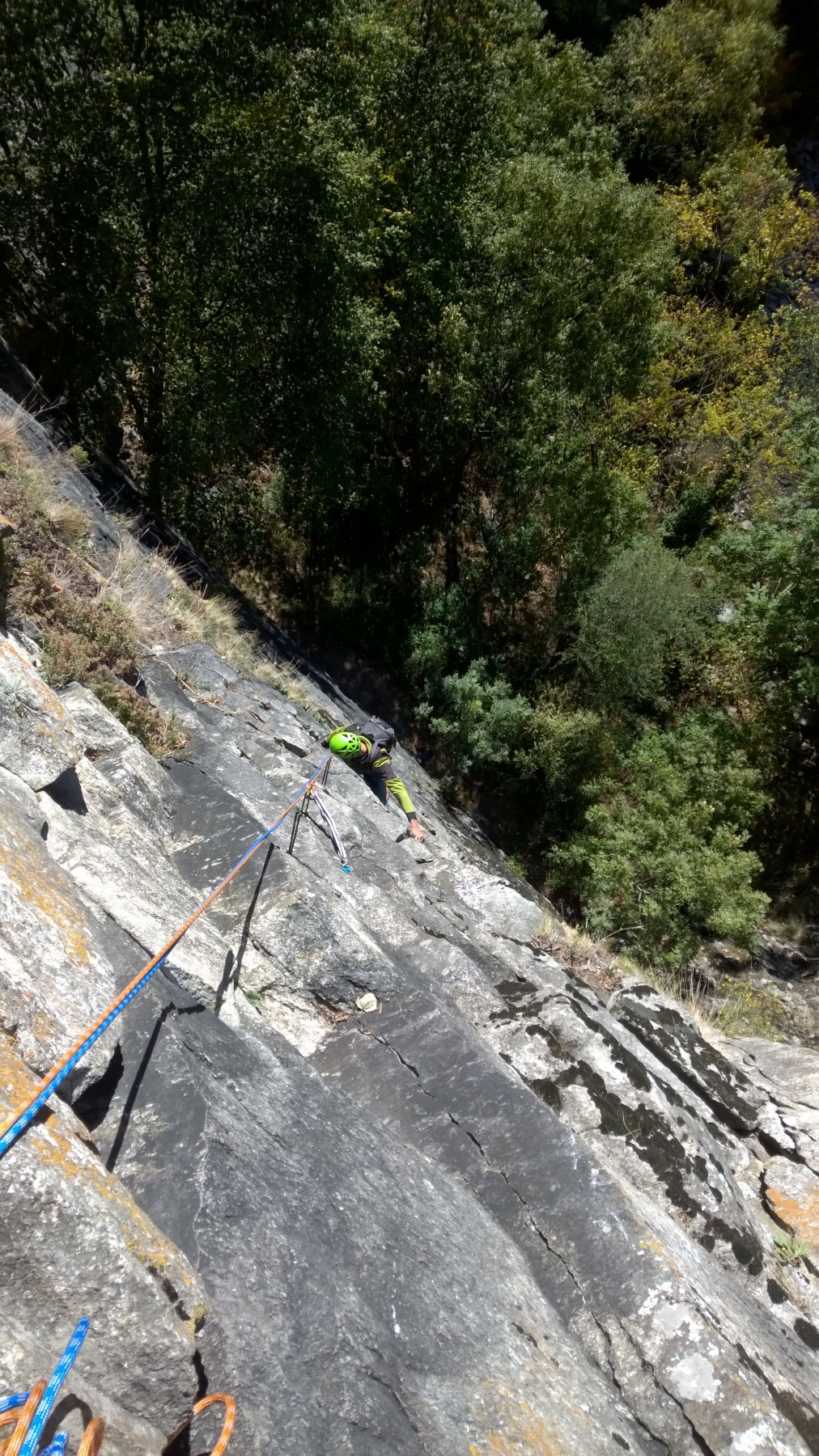 La via è attrezzata nello stile di F. Michelin, pertanto occorre sicurezza sul grado proposto, oppure munirsi di qualche nut/friend per integrare le protezioni in posto.