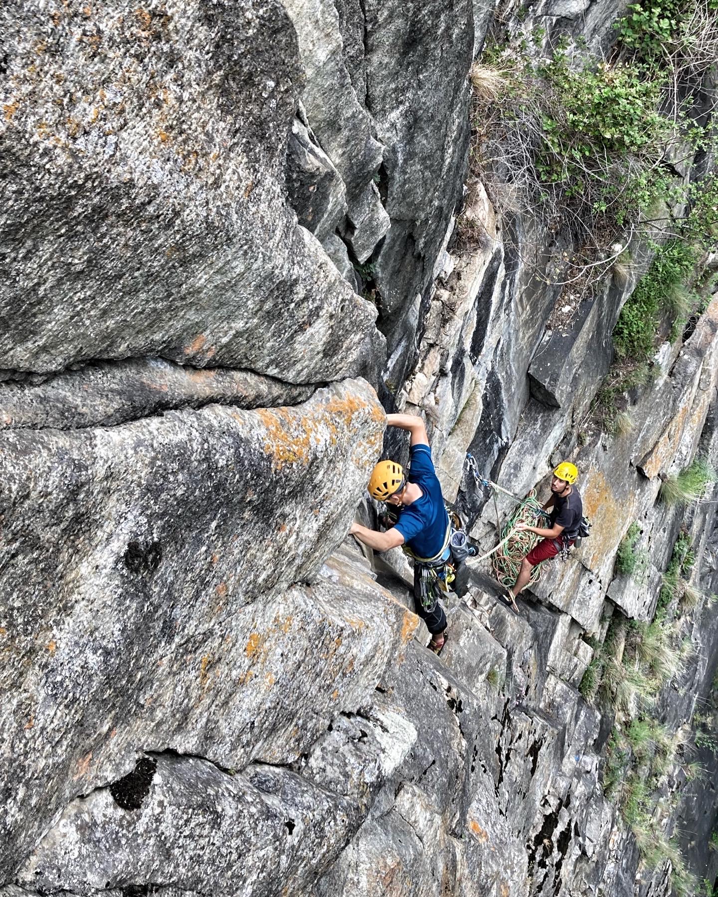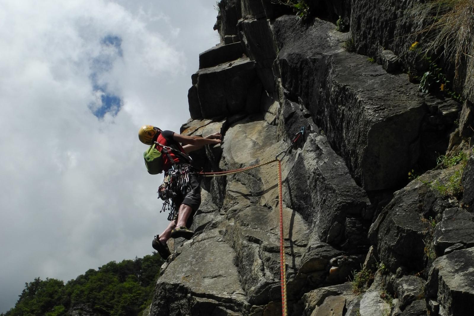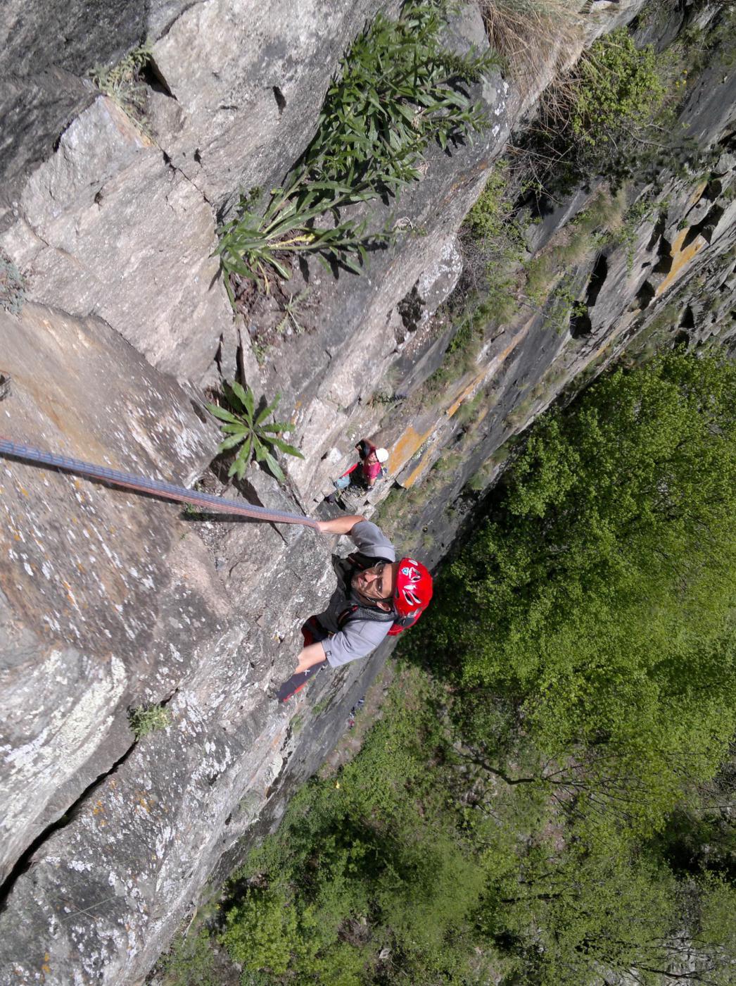 La via è attrezzata nello stile di F. Michelin, pertanto occorre sicurezza sul grado proposto, oppure munirsi di qualche nut/friend per integrare le protezioni in posto.