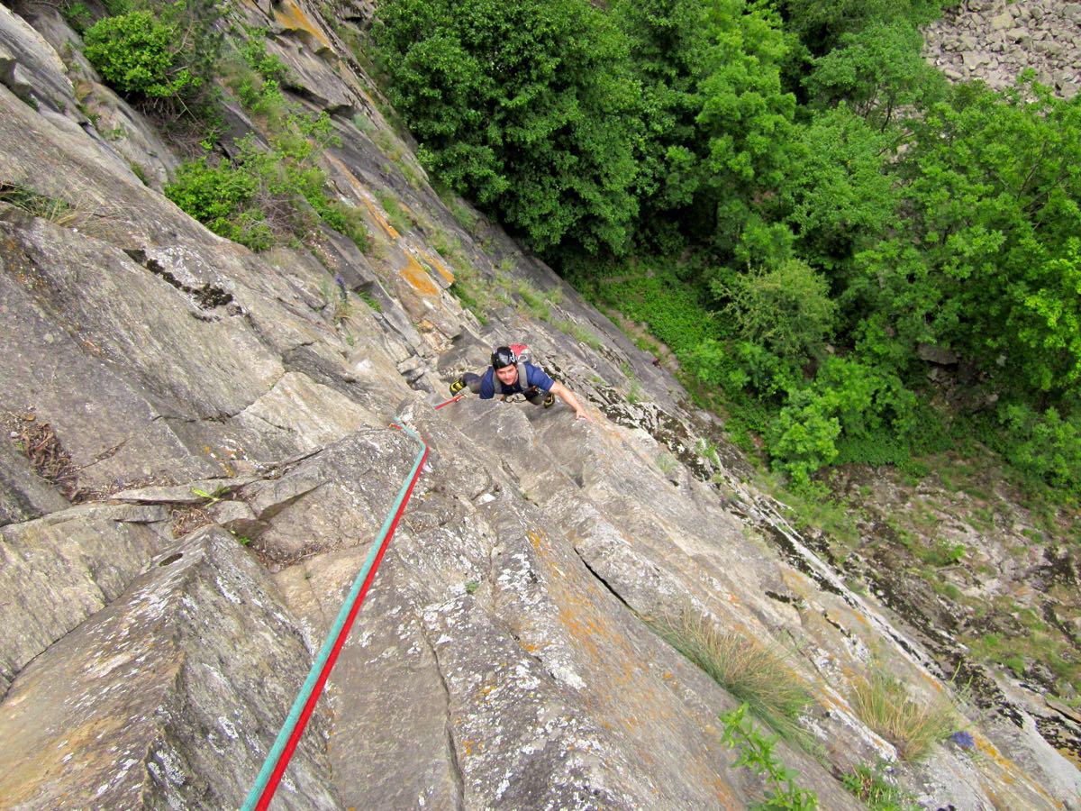 L6: 5a spigolo (roccia mediocre) (occhio a nido di piccolo rapace luglio 2014)