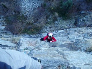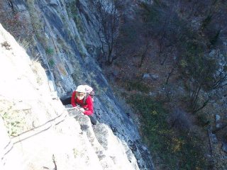 favolosa via, i tiri sono uno più bello dell’altro, una delle più belle che abbia fatto, decisamente molto tecnica con dei movimenti anche delicati e da studiare, l’uso dei piedi e il movimento del corpo permettono di non fare una fatica eccessiva. L’aspetto mentale è anche determinante perchè è tutta in verticale e alcuni tratti in strapiombo. Chiodatura eccellente (non da falesia) come al solito nei punti giusti. Nel terzo tiro i fix sono vecchi e qualcuno anche un po piegato…….Le protezioni non le ho portate e secondo me non servono. Con Adry