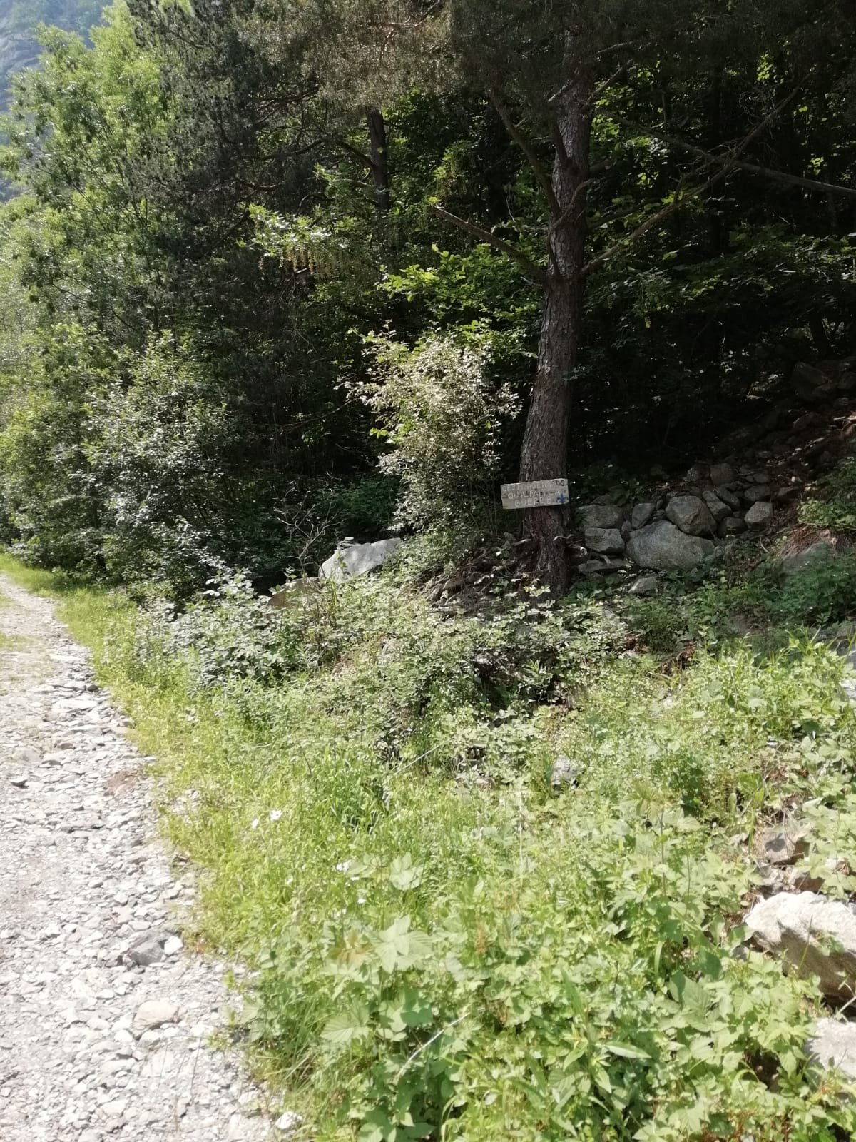 DAL PIAZZALE DI RORETO SEGUIRE LA STRADA PRINCIPALE DEL VALLONE DI BOURCET; 100 M DOPO LA SORGENTE DEVIARE A DX SEGUENDO BOLLI BLU FINO ALLA PARETE DEL DELTAPLANO (NOME ALLA BASE)