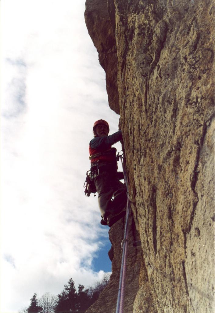 Bella duretta, nell’ insieme da non sottovalutare, anche se il passo di 6c si azzera abbastanza facilmente; difficile il terzo tiro; arrampicata sia di placca che di forza.