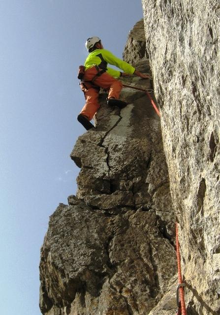 DISCESA: Consiglio di salire una 50 di metri sulla sx raggiungendo l’uscita dello sperone dei corvi. Si prosegue ancora per altri 50 m in salita e poi si attraversa sempre verso sinistra raggiungendo la discesa della via ferrata. 20 minuti circa.