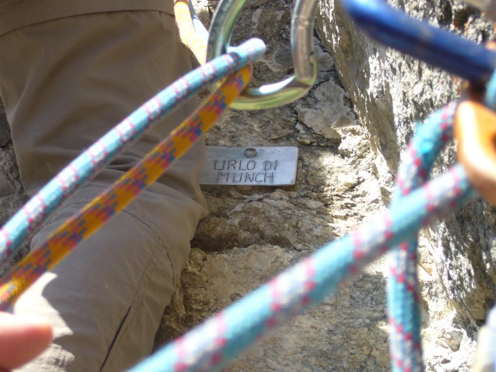 Arrivati alla sosta 4 “inizia” la via ma le braccia sono gia’ state messe a dura prova; i primi due tiri effettivi dell’Urlo sono piu’ semplici e molto molto estetici, esposizione e bei movimenti (attenzione alla seconda meta’ di L6 che ha molte granette che vengono ancora via). Il camino l’abbiamo trovato tutti molto faticoso, soprattotto l’attacco.. poi migliora ma non e’ x nulla rilassante (prestare molta attenzione perche’ diverse pietre dentro la fessura vengono via). Gli ultimi due tiri hanno dei forti strapiombi, con buone prese, ma se arrivi li come noi che sei gia’ cotto.. allora li trovi durissimi.