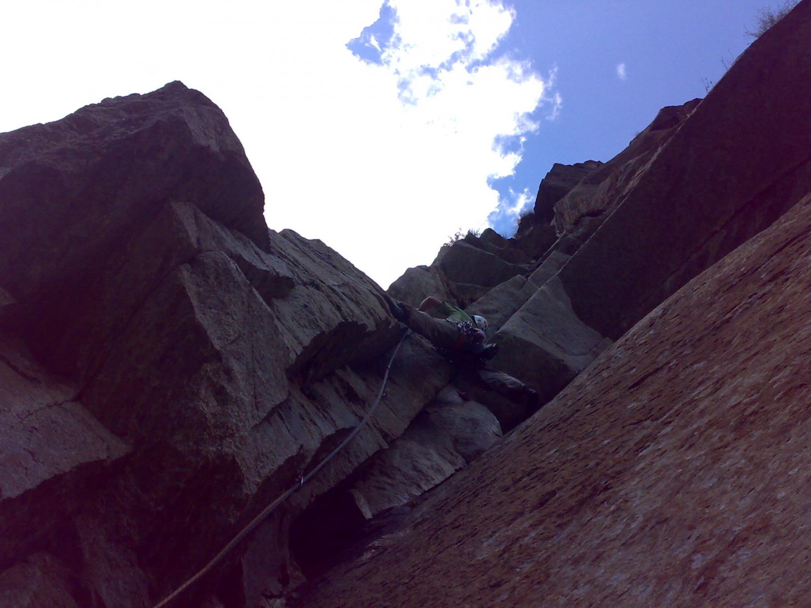 Bella via, roccia ok solo un pò sporca negli ultimissimi tiri. Giornata molto calda con aderenza non al top.