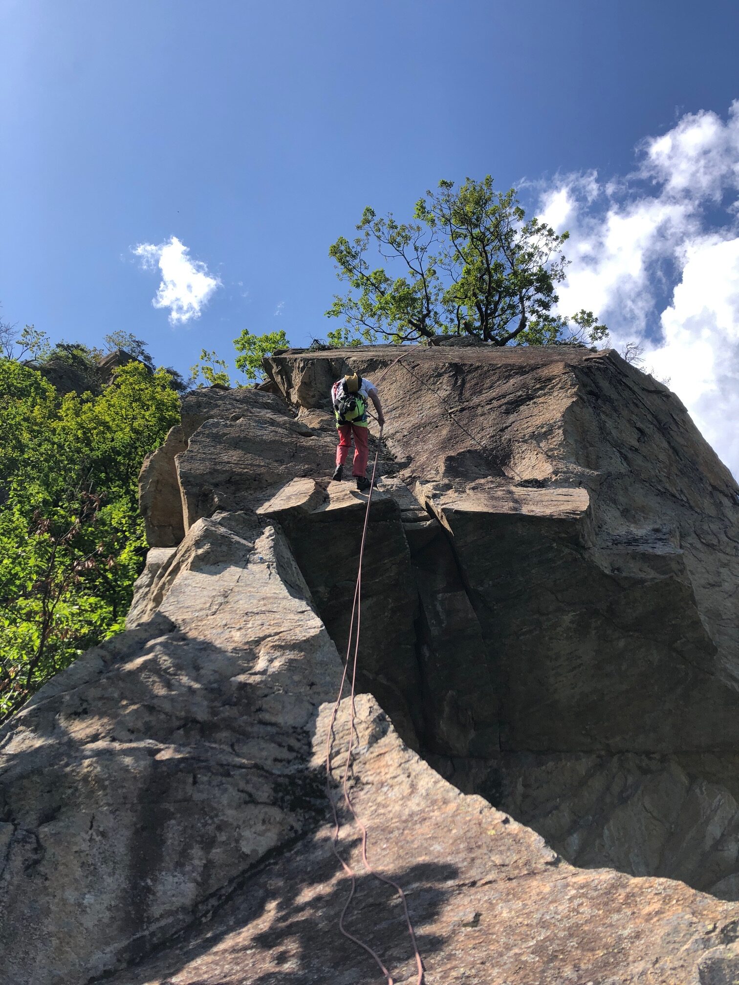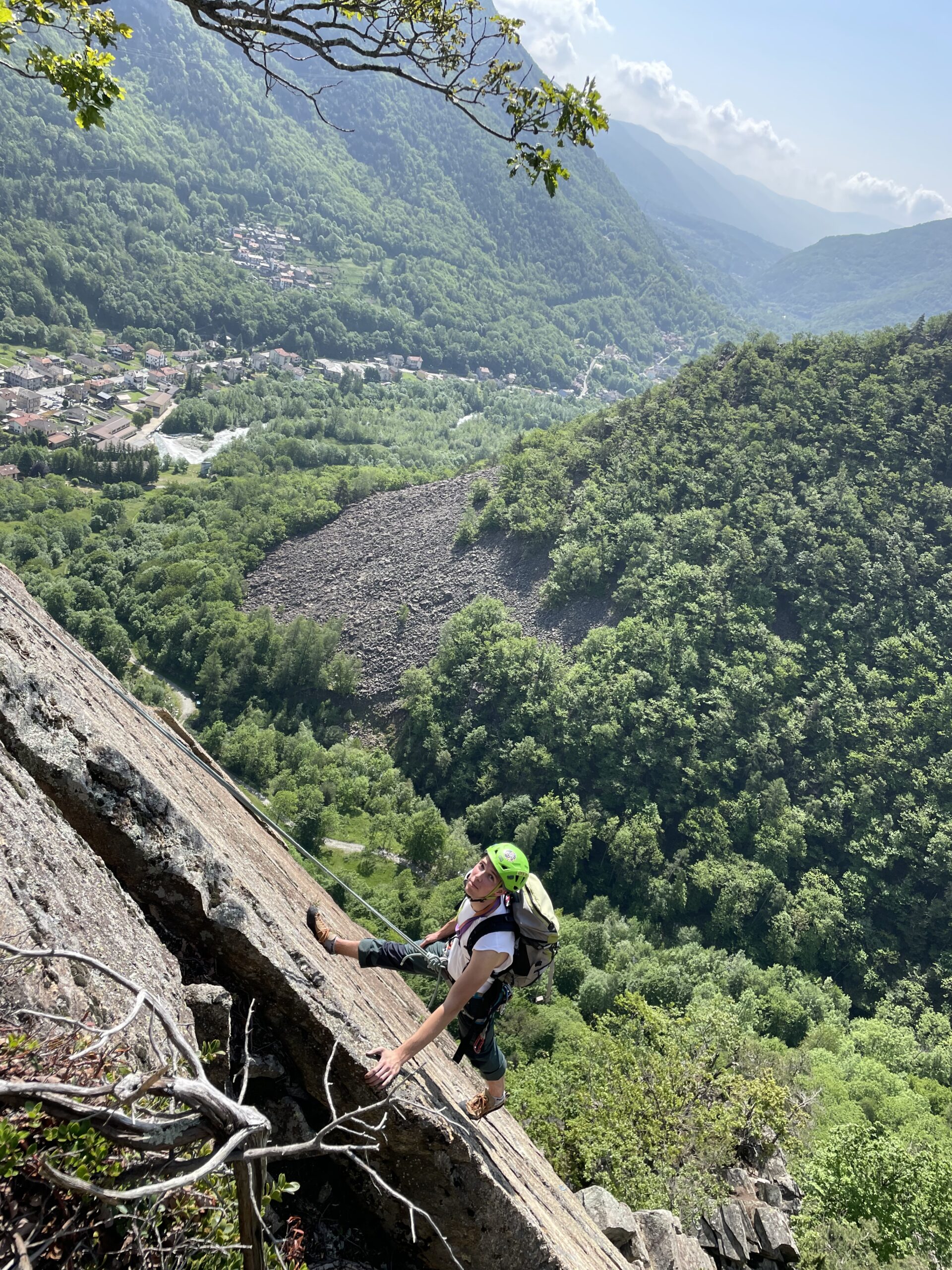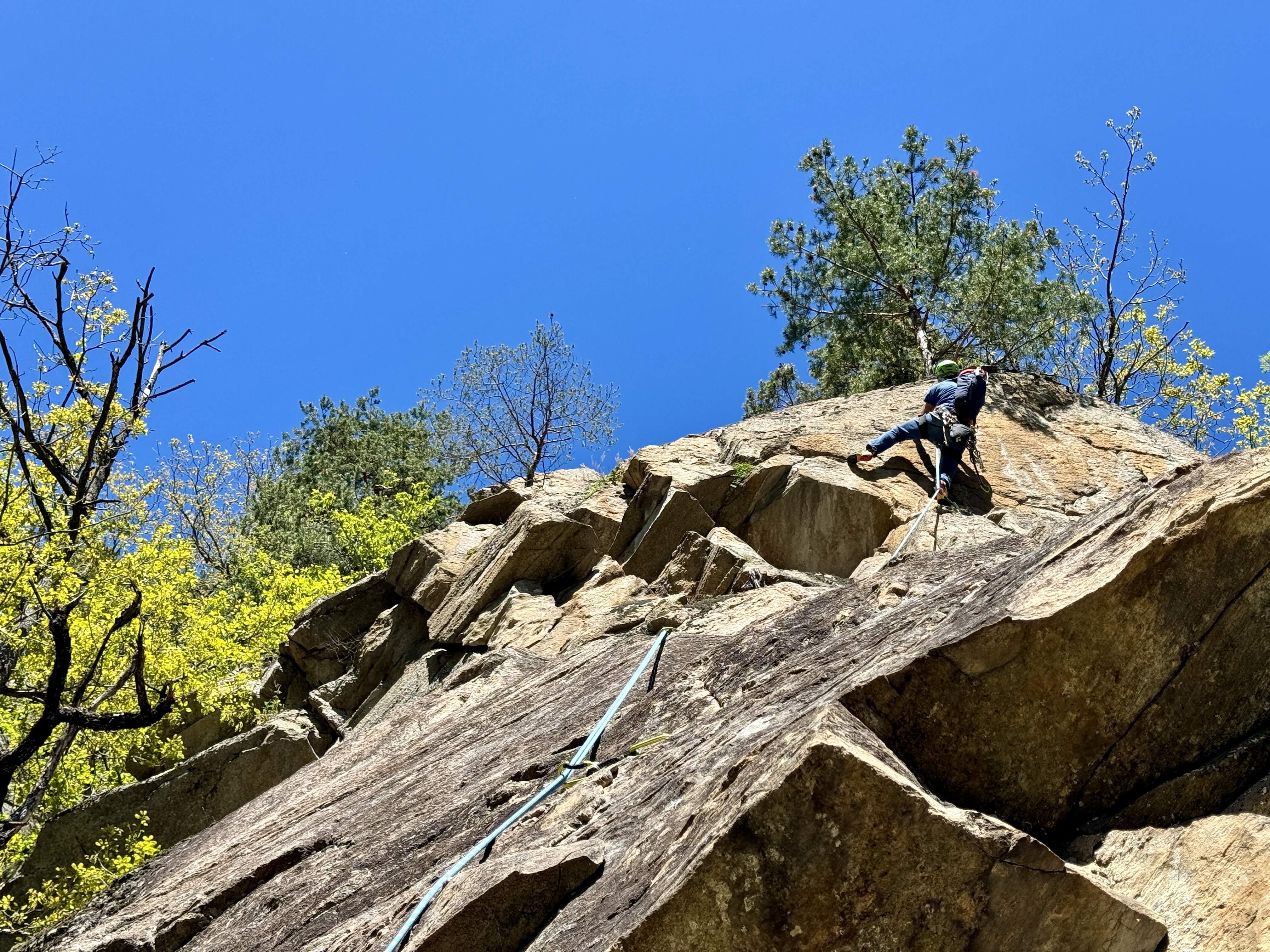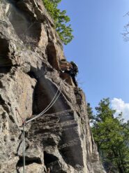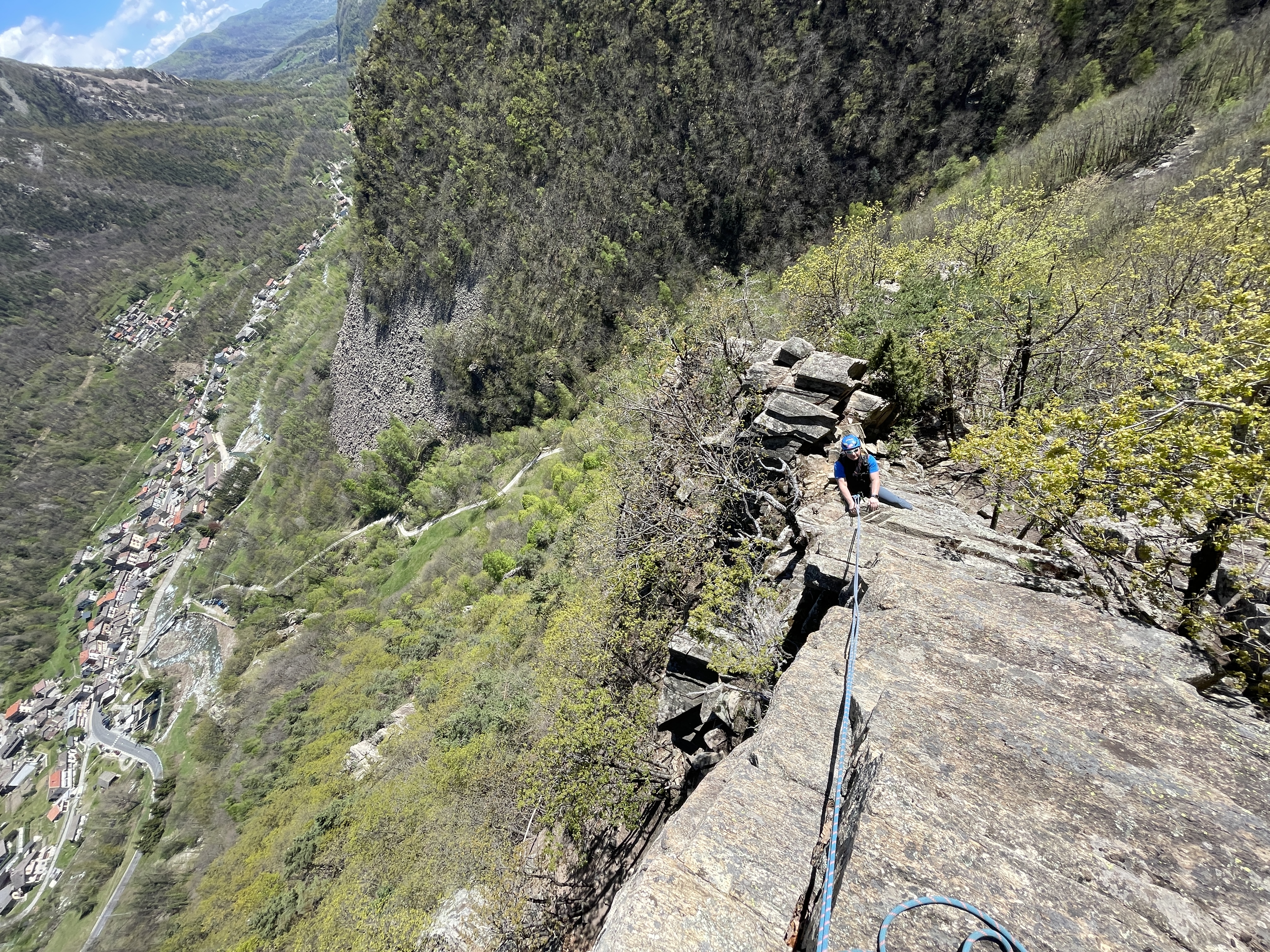 - L9: bello spigolino facile seguito da una placca apparentemente liscia ma ricca di fessure