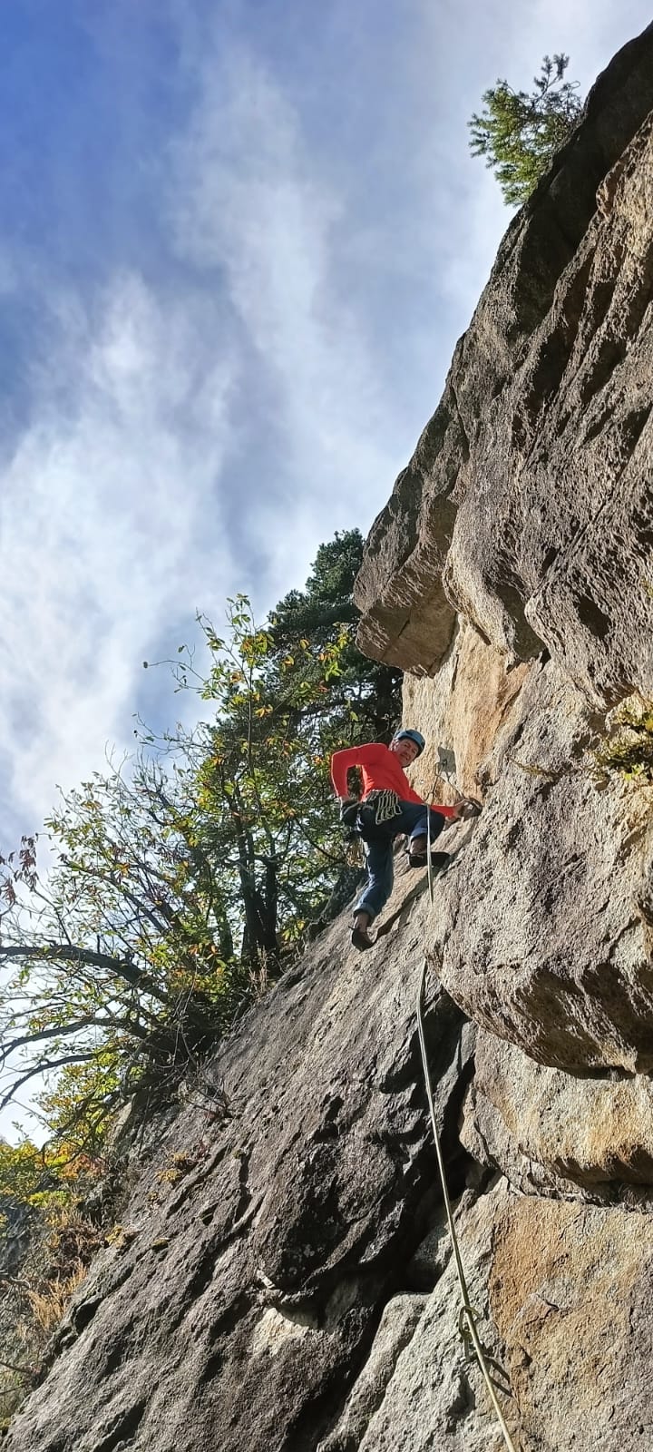 - L7: diagonale verso dx su bellissima roccia a buchetti e concrezioni con un passo più aggettante verso la fine; 5b