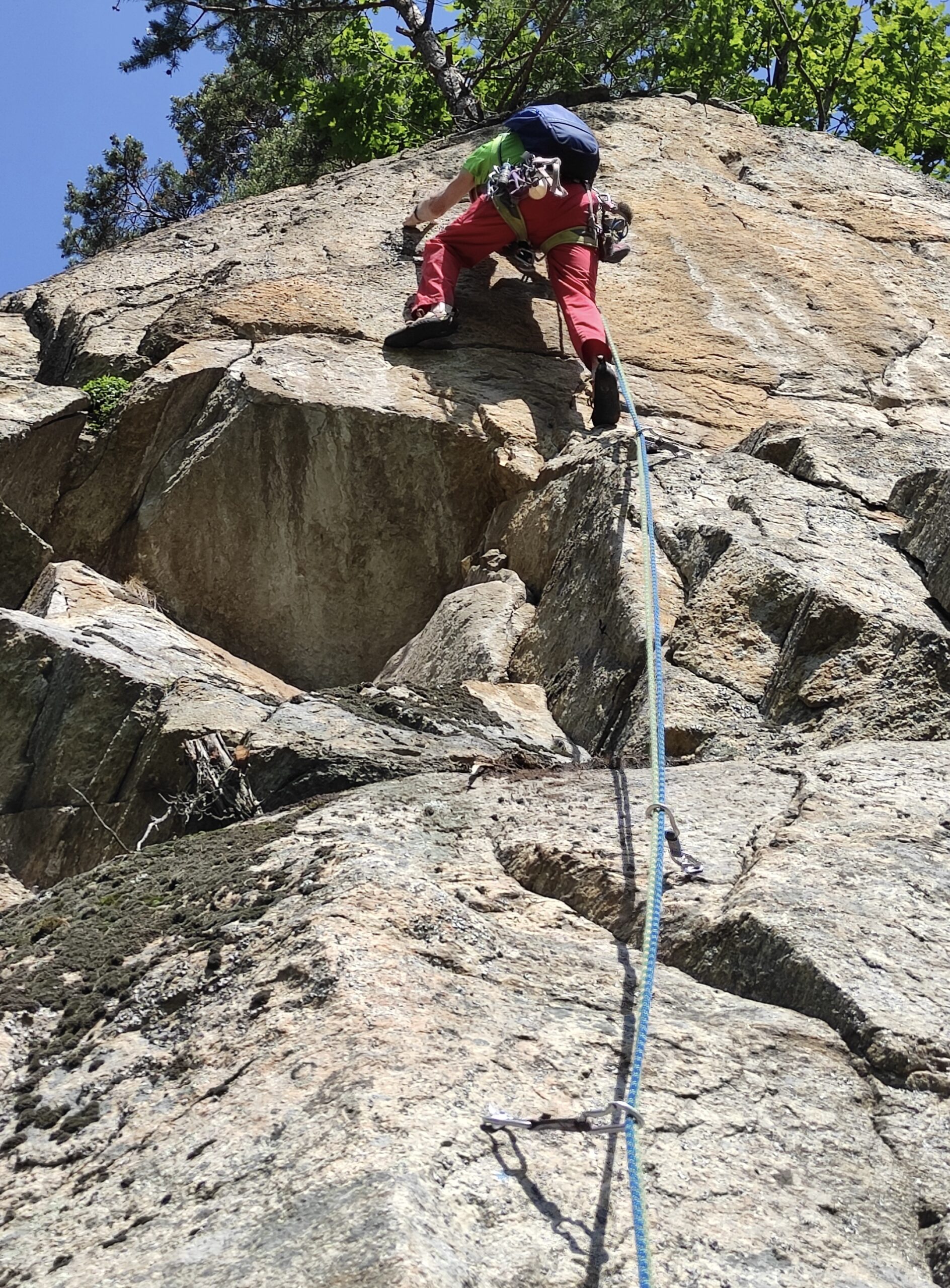 Una nuova splendida creazione di Fiurens! Arrampicata molto divertente e varia, su ottima roccia, in un ambiente molto differente da quello più cupo e chiuso del Bourcet: si sale per speroni rocciosi, inizialmente immersi nel bosco di querce, castagni e ginepri, poi in bellissima esposizione assai solare e panoramica.