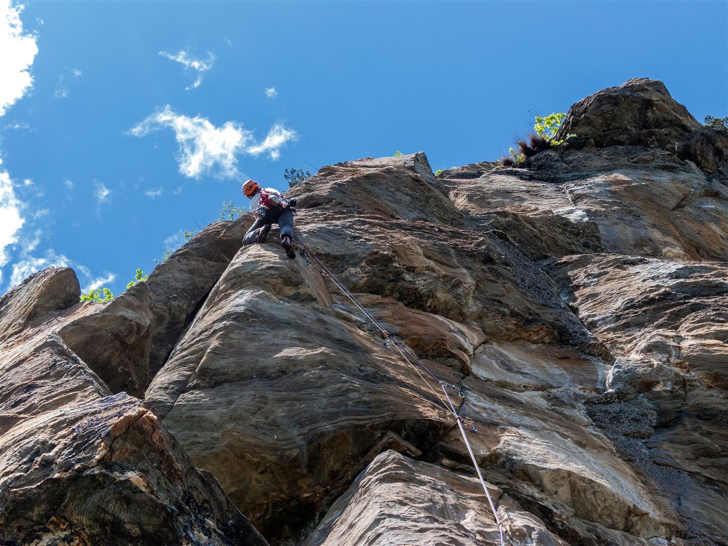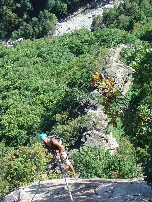 - L10: strapiombo spettacolare su roccia incredibile a conche 6c+ in libera azzerabile.