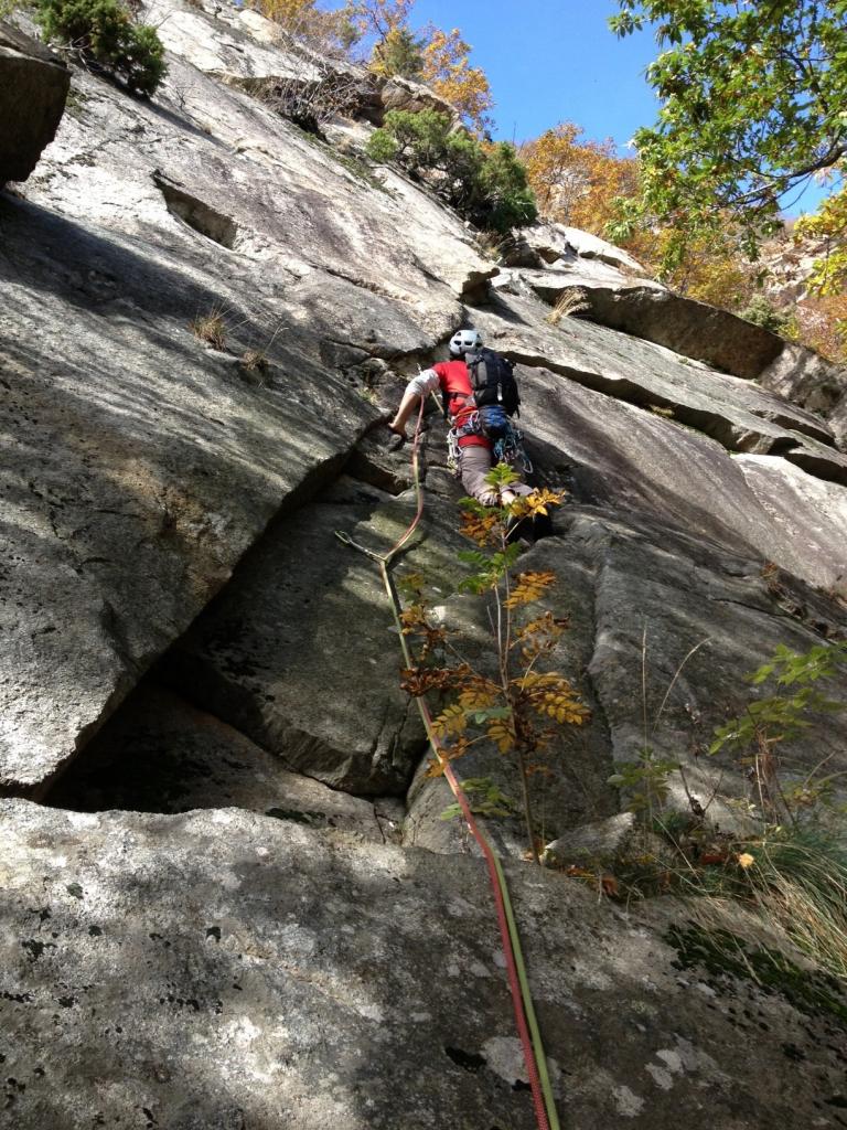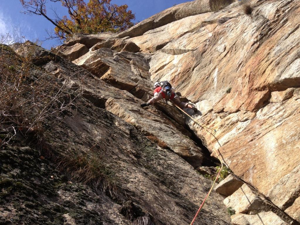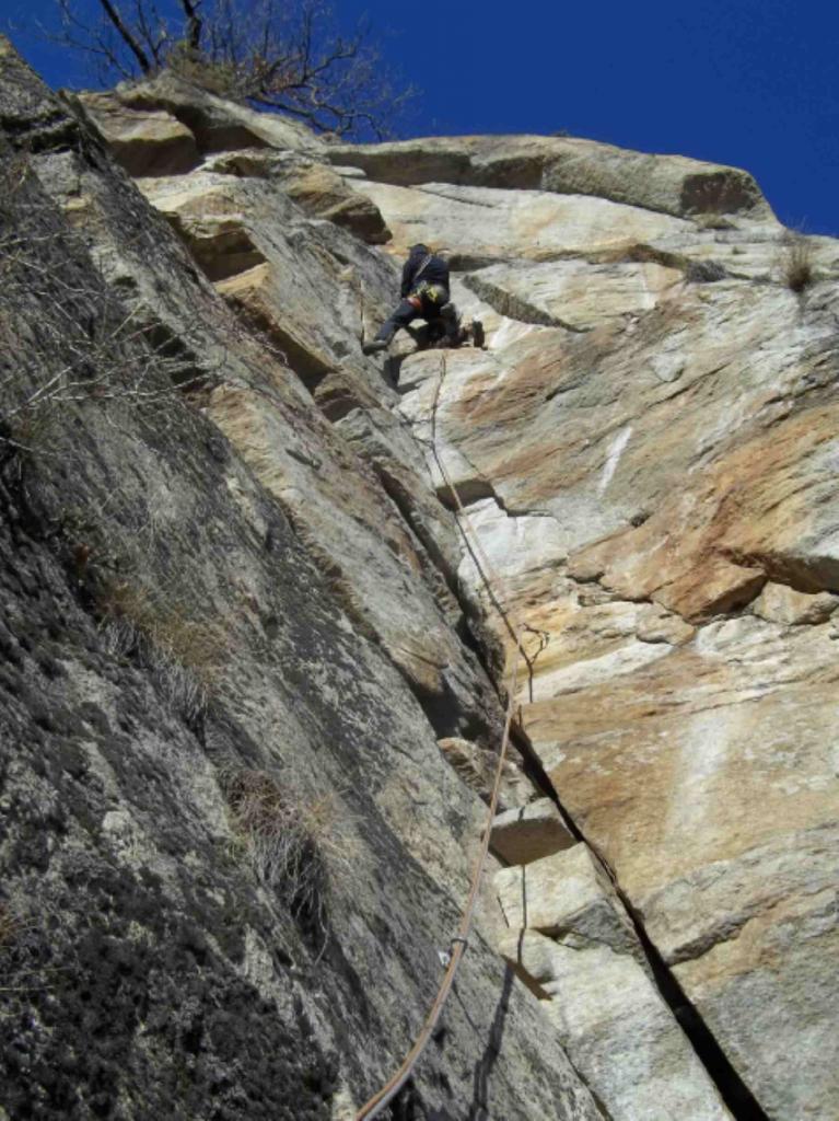 Chiodatura Michelin spaziata sui (pochi) tratti facili ma non servono nut e friend.