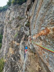 - L5: tiro il più completo. passo obbligatorio sul 6a al primo spit poi aderenza e due muri a tacche 6a (solo?).