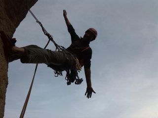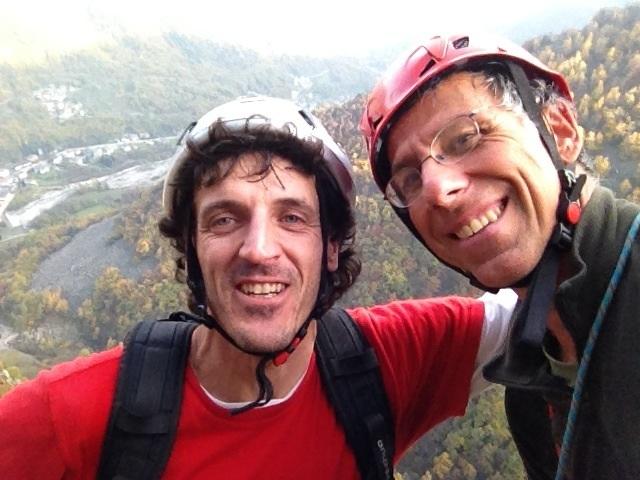 Per la discesa, con corde da 60, doppie dalla decima, ottava, sesta, quarta sosta e dalla sosta di calata su albero che si incontra alla fine del traverso del terzo tiro.