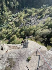 Discesa: A piedi lungo il sentiero attrezzato o con doppie da 25metri sullo Spigolo grigio