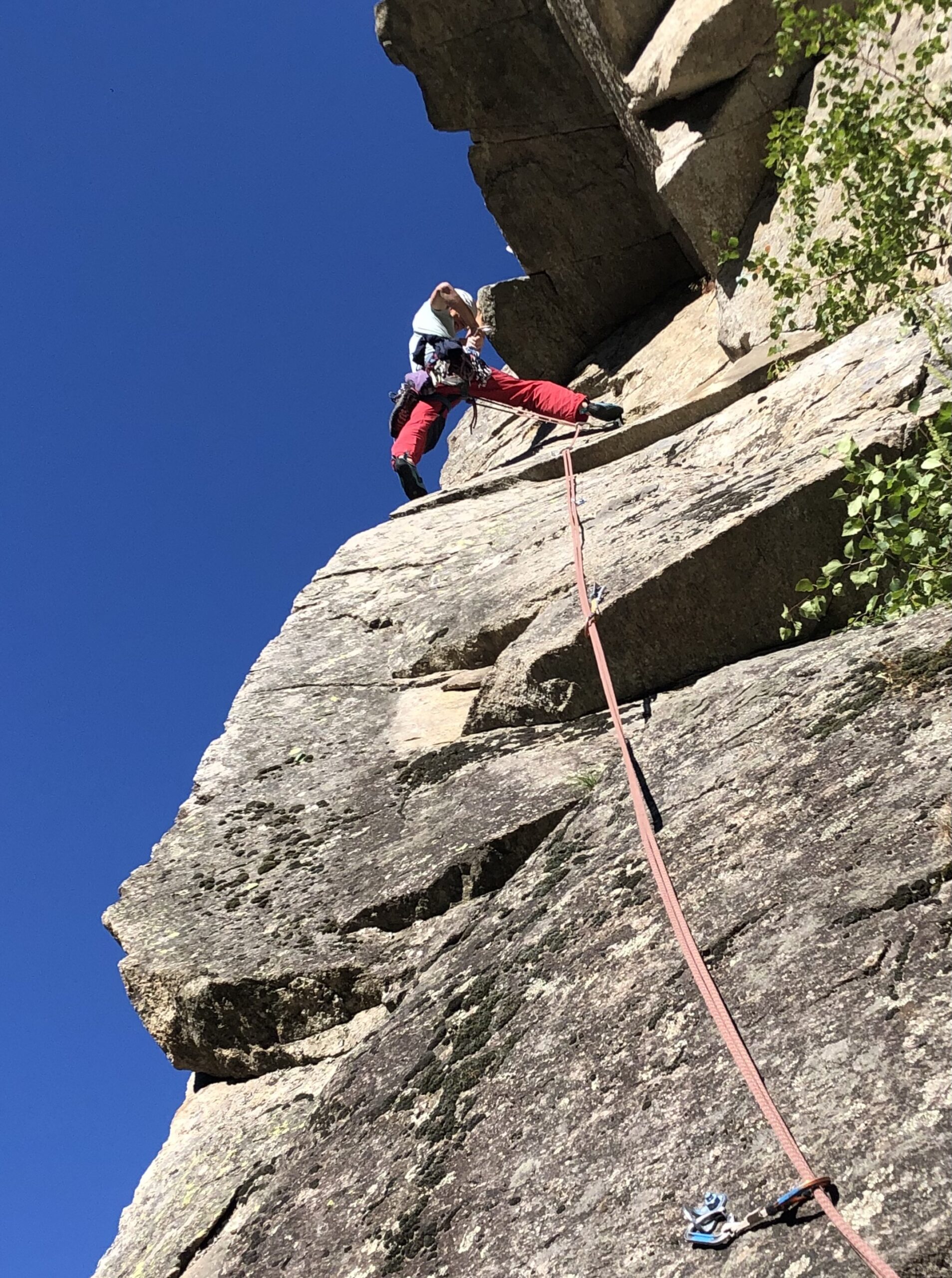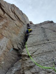 A questo punto è possibile proseguire lungo il classicissimo Spigolo Grigio (5c, 6a, 4c, 5b).