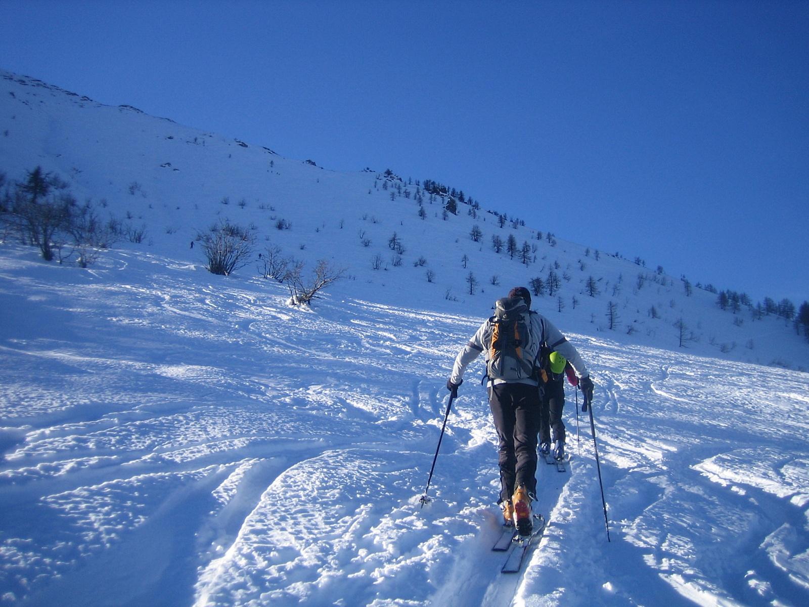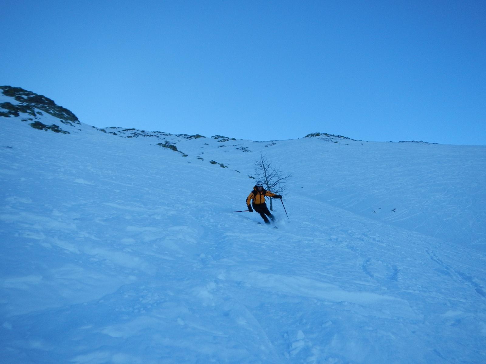 bell’itinerario che si svolge su pendii, a tratti, sostenuti;l’esposizione in pieno nord mantiene a lungo la neve polverosa.