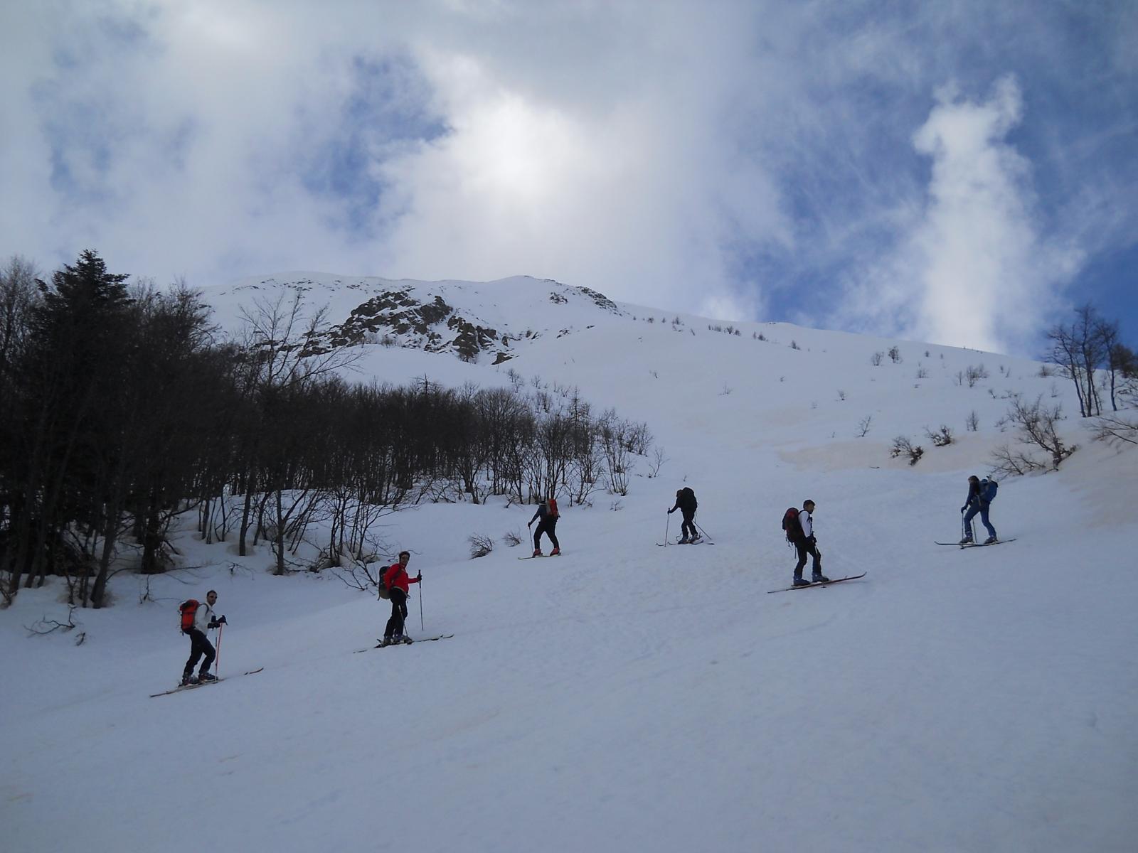 Sottoscrivo quanto riportato dall’amico Mauvaispas. Una giornata che nell’arco di un baleno è passata dalla primavera all’inverno. In cima la situazione è “delicata” con la dorsale che ci ha presentato neve dura e ventata tanto da sconsigliarci di montare sino alla vetta.