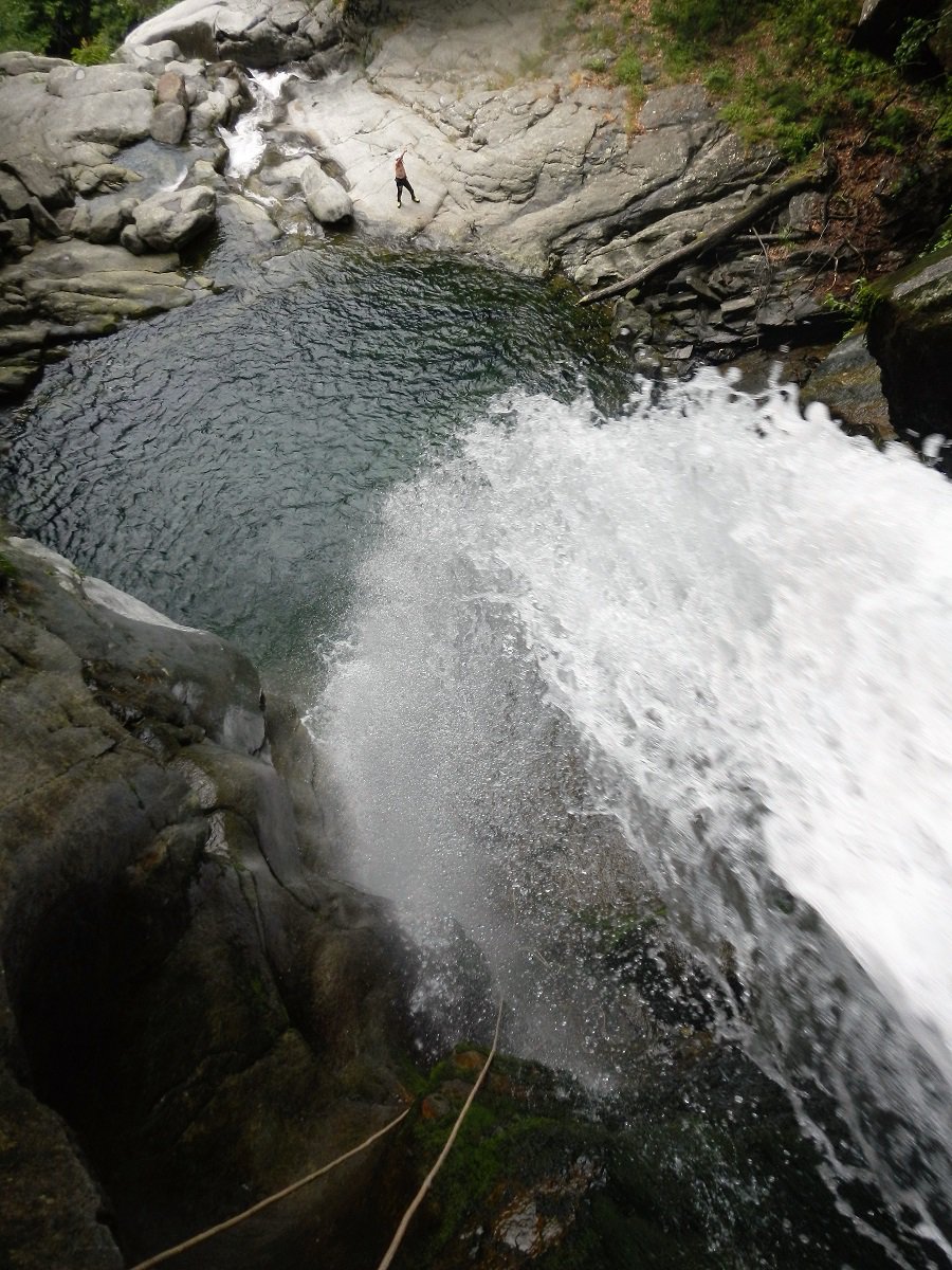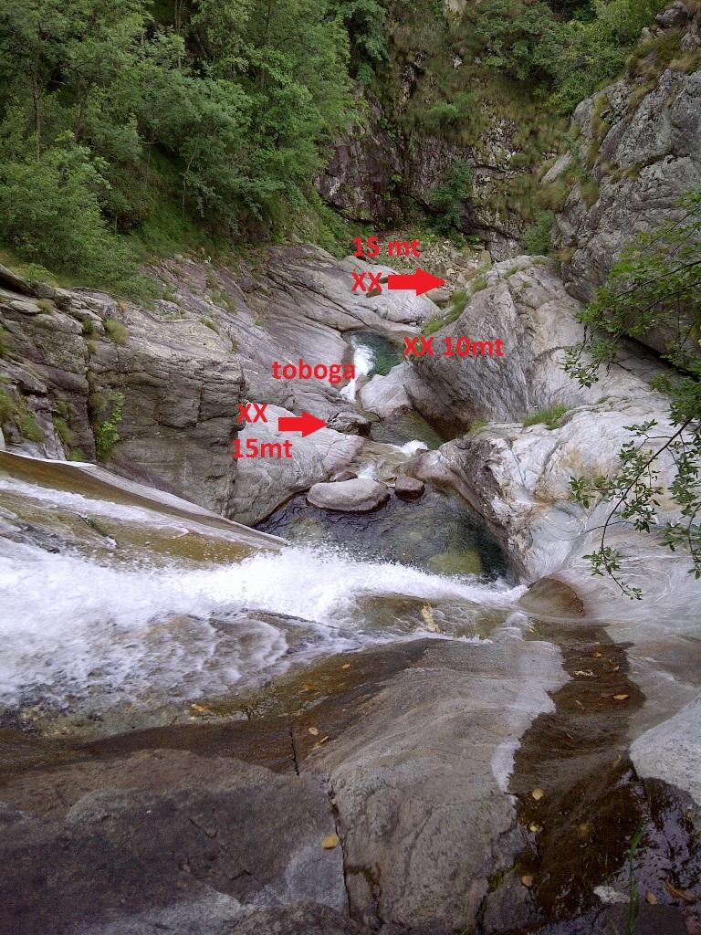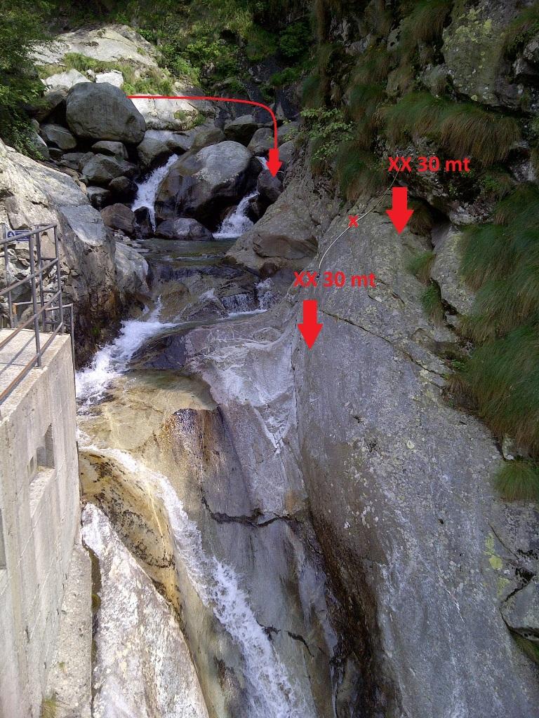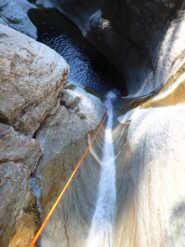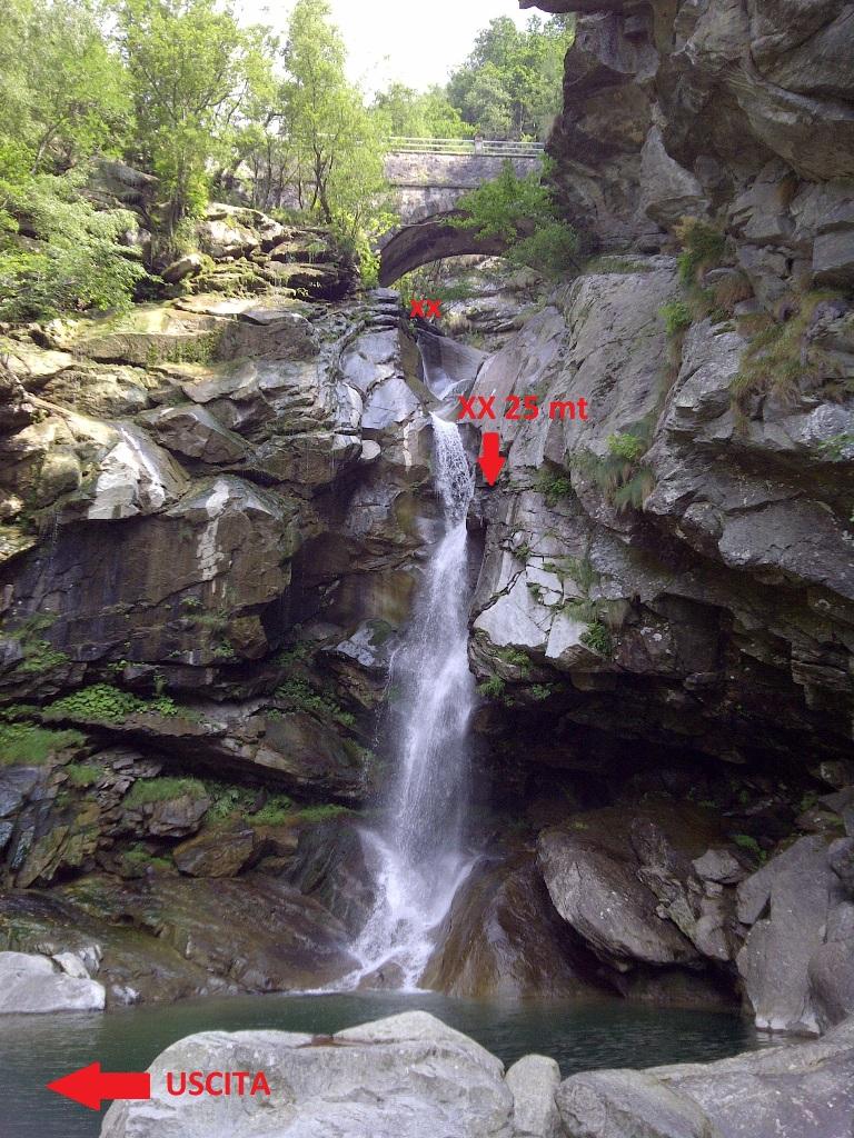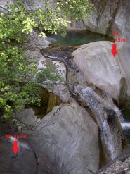 Porre molta attenzione al livello dell'acqua,con forte portata può creare qualche difficoltà per il primo a raggiungere l'armo per l'ultima cascata sotto il primo ponte.Sopra di questo sul penultimo armo c'è una scappatoia.Corde utili 2x 50 più soccorso.