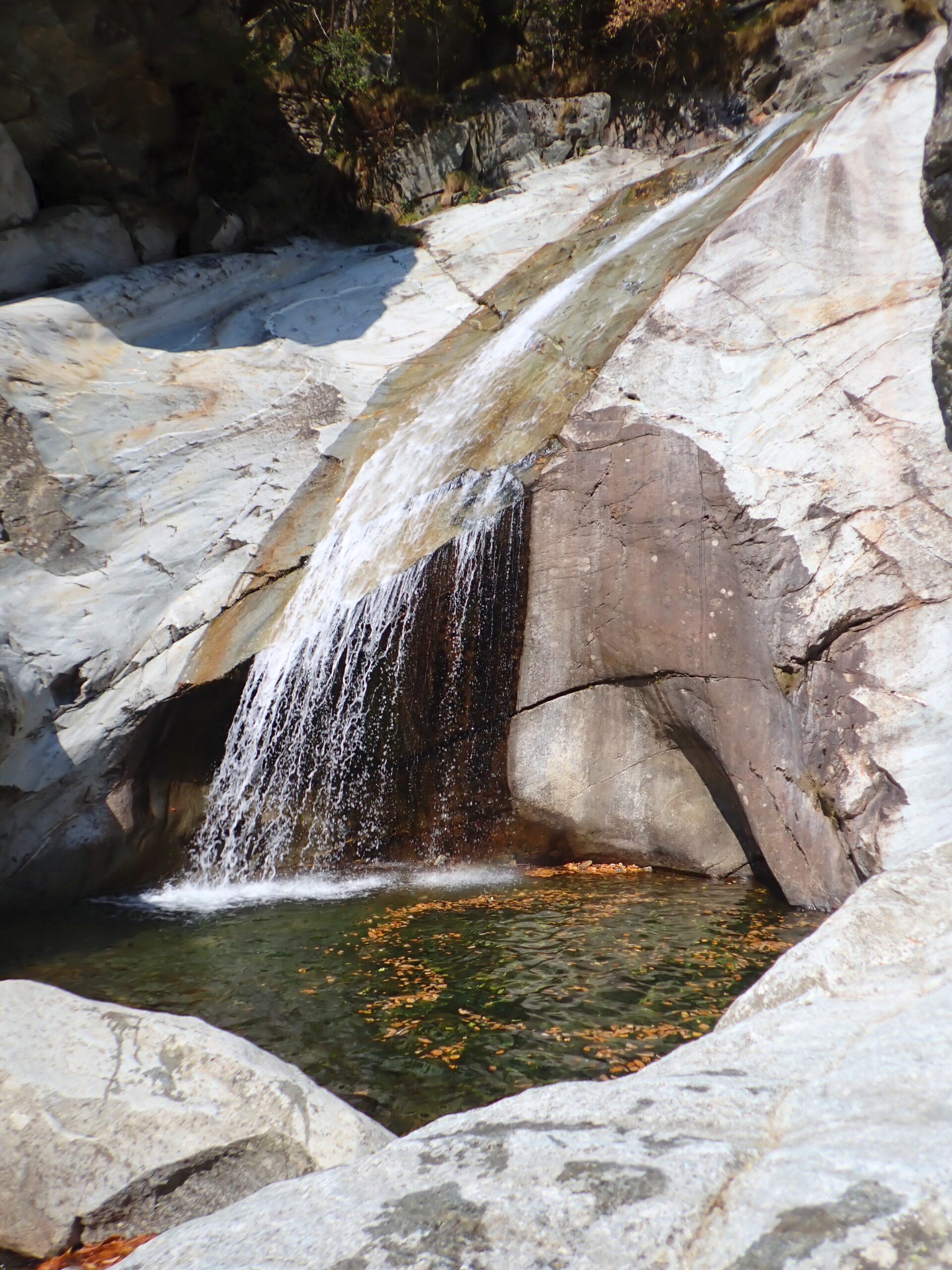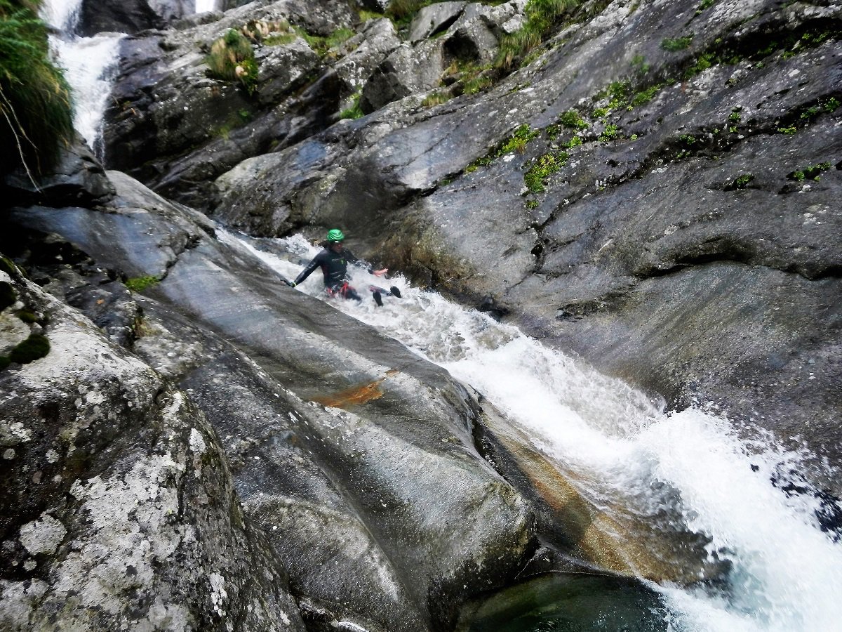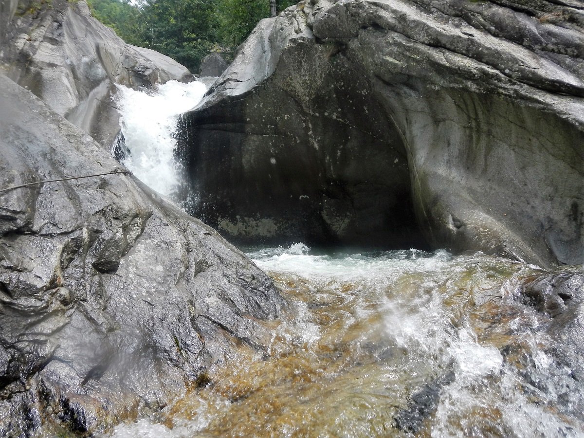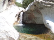 Torrente molto acquatico con bella sequenza di calate con belle vasche scavate nel granito di color verde smeraldo.