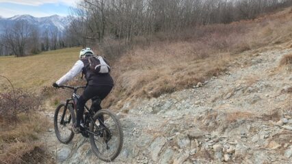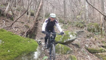 A Prese Rossi I primi 100 m lineari, scavati e rIpidissimi, sono ora evitabili partendo poco oltre, dal cartello PS 2, grazie alle indicazioni di Lucabelloni. Molte foglie, un albero di traverso, fondo più scavato e sconnesso rispetto a qualche anno fa. Ma con le e-bike è tutto più facile.