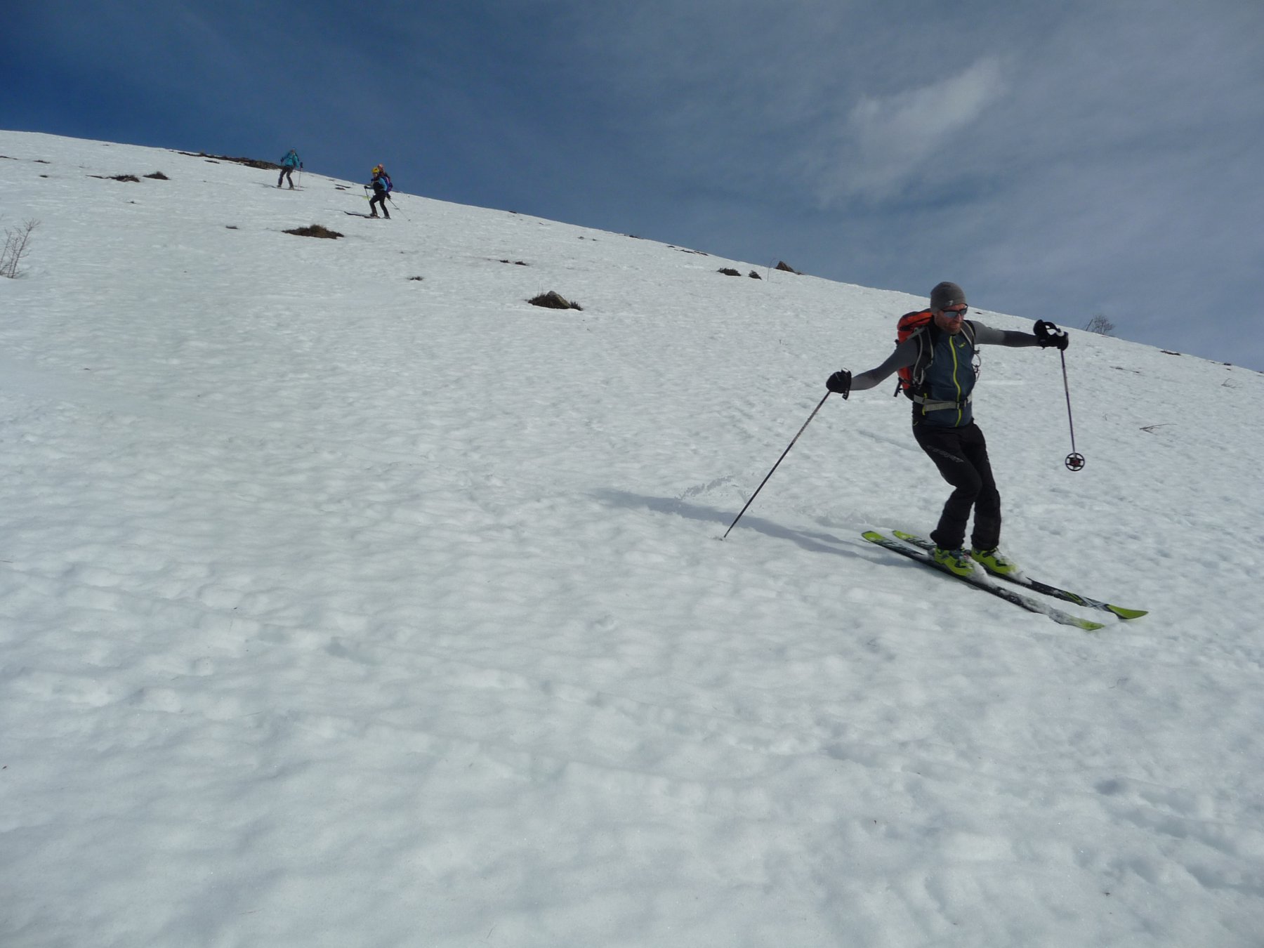 Visto il caldo di questi giorni scegliamo nuovamente il vallone dell’Arma con il motto meno neve c’è meglio è… Saliamo prima al Borel da questo scendiamo fino alla stradina e ripello fino in vetta al Bram. Nelle due discese qualche bella curva si fa anche ma nella maggior parte dei casi la neve è bagnatissima e sfondosa…