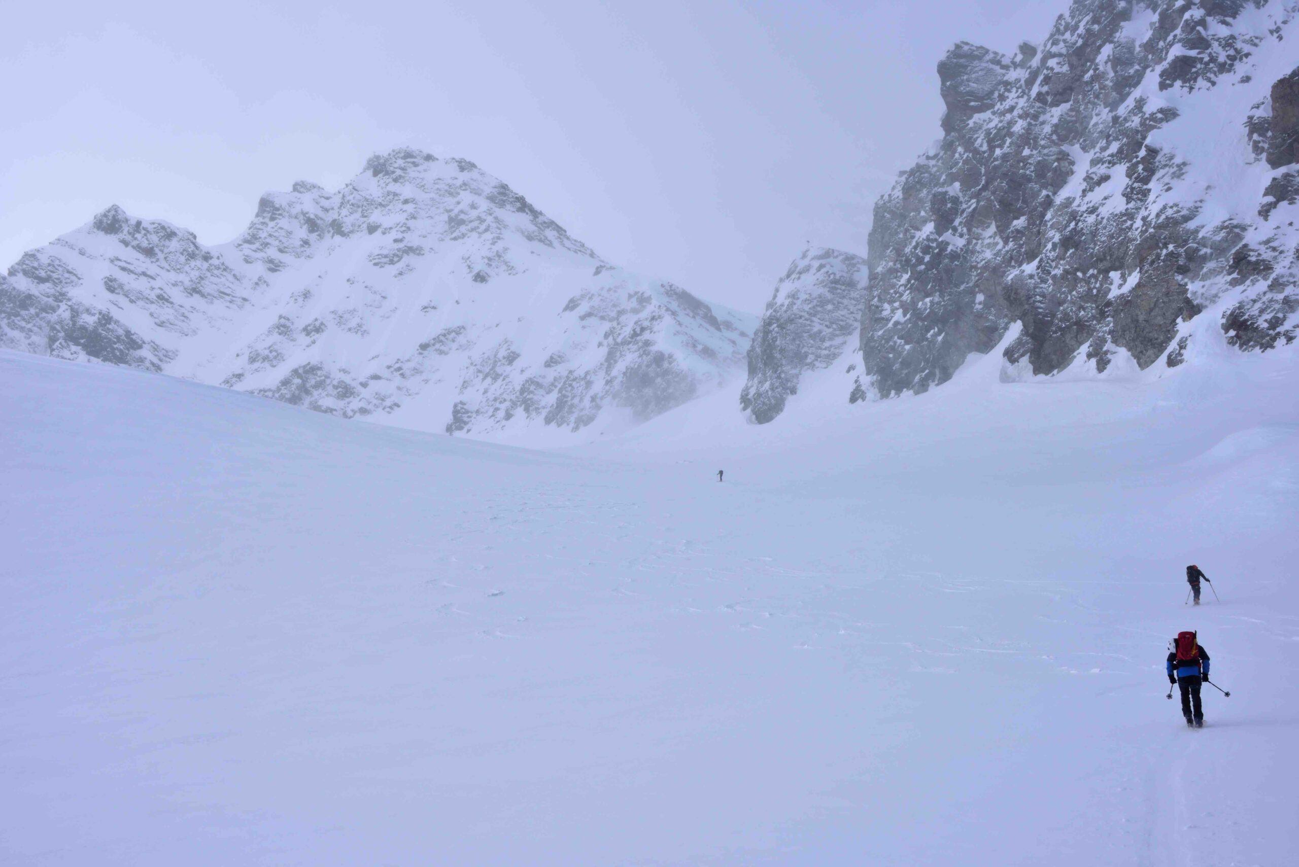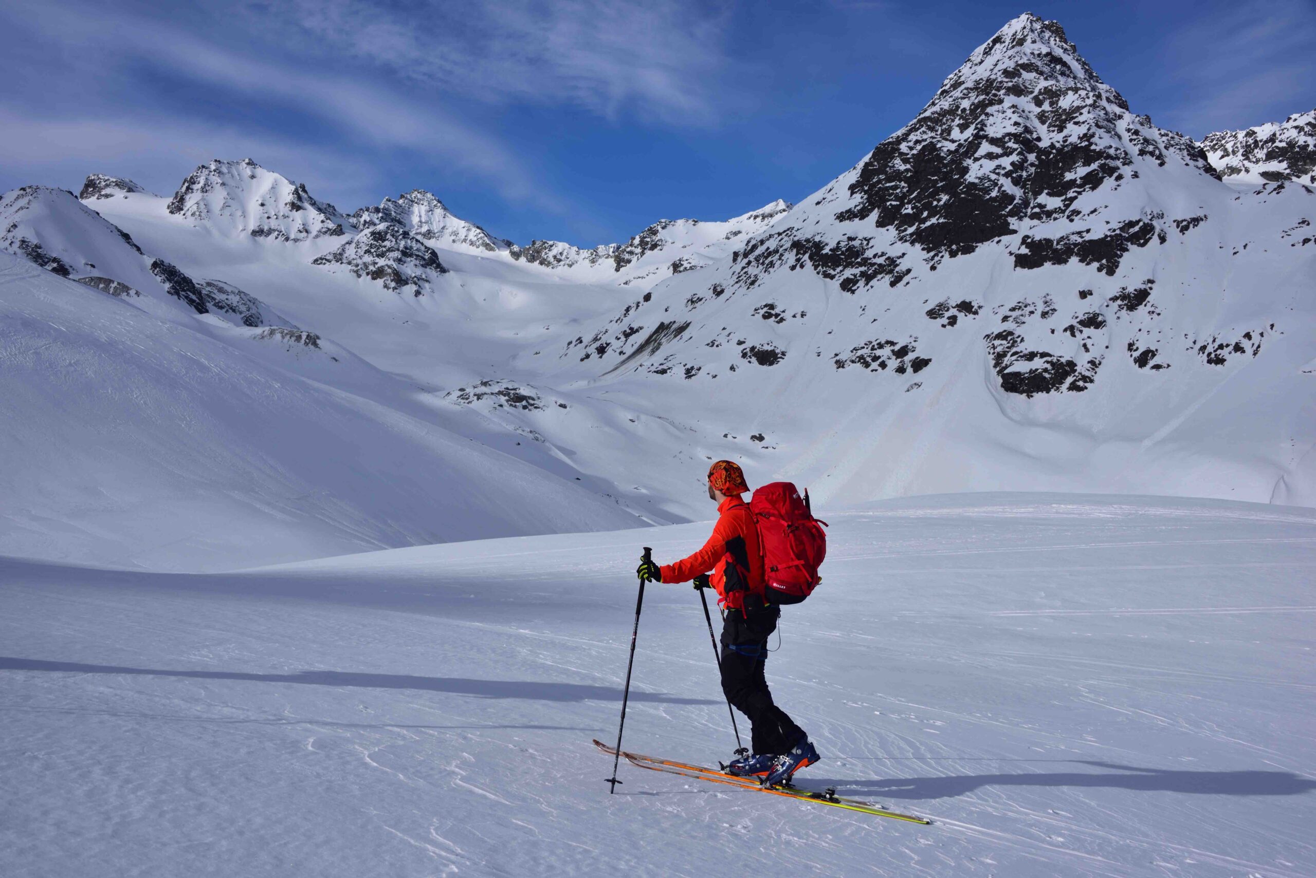 3°g: Traversata alla Jamtal Hutte: salita dalla Heidelberger hutte al Breite Krone (m 3078, ultima parte spesso a piedi in quanto pelata dal vento), brevissima risalita al Kronenjoch (m 2974), discesa alla Jamtal Hutte (m 2165). BS, 816 m D+, 913 m D-.