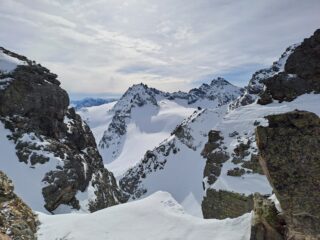 si parte e si arriva a Galtur in sci e non ci sono problemi sui vari ghiacciai. La neve, non abbondante, ha risentito del vento, per cui occorre stare alla larga dalle dorsali e dalle numerose zone visibilmente spazzate, e restare nelle combe più riparate, dove talora si trova ancora buona farina vecchia. Alcune zone più lavorate e irregolari, ma tutto sommato quasi mai sgradevoli da sciare, complici anche i numerosi passaggi ed il conseguente effetto pistato, che aiuta nei tratti con neve meno bella. Tratti alpinistici per le varie cime sempre molto interessanti. Tre stelle per le neve, per tutto il resto tour da 5 stelle, assolutamente consigliabile!